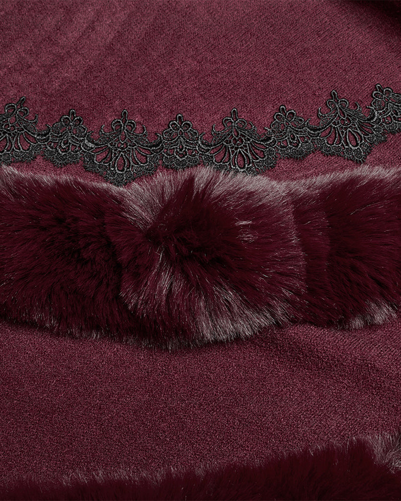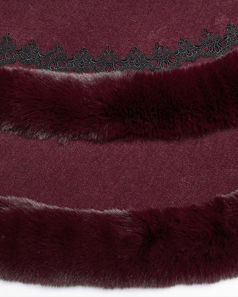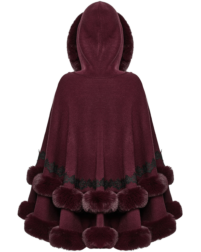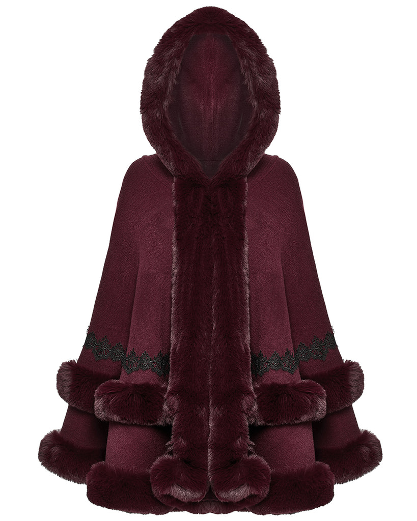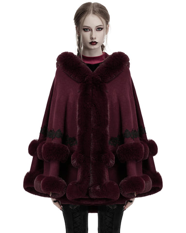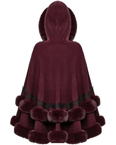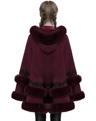 Punk Rave Daily Life Womens Plush & Faux Fur Hooded Winter Cloak - Red