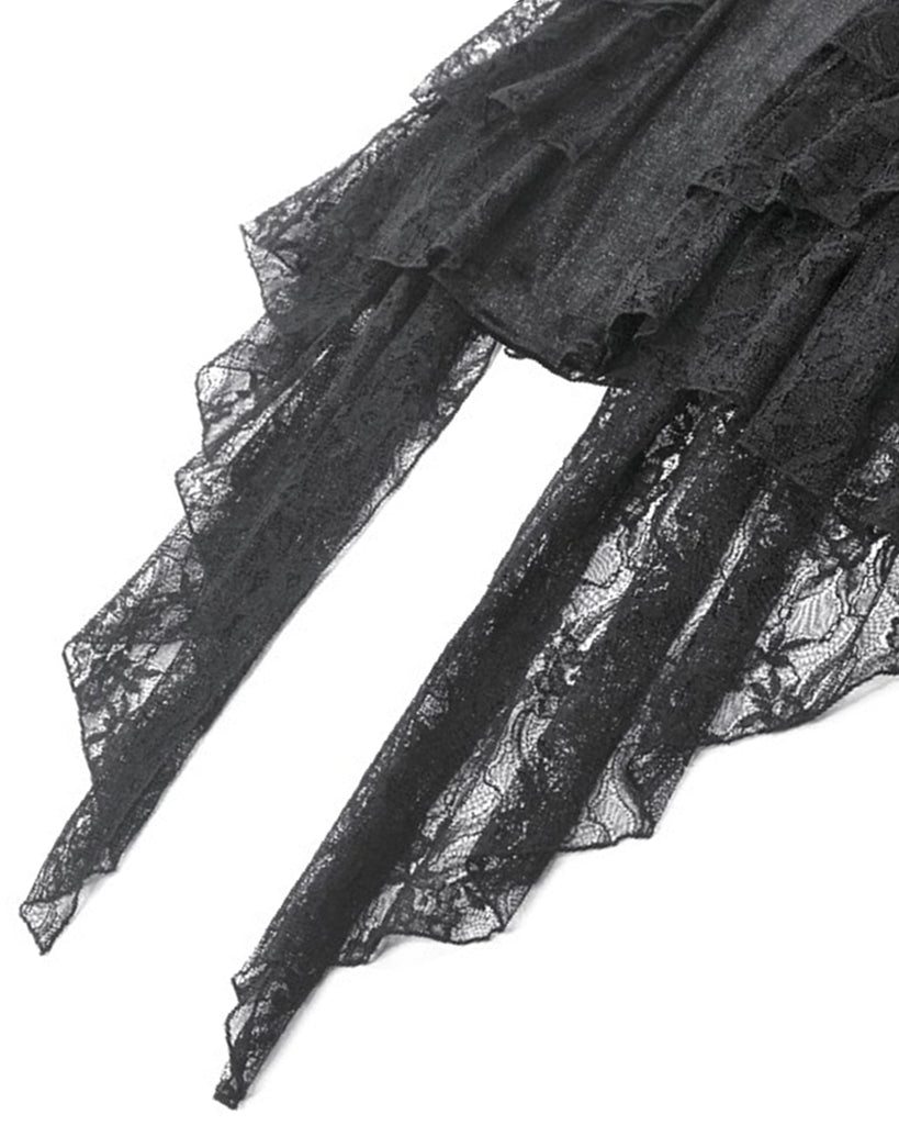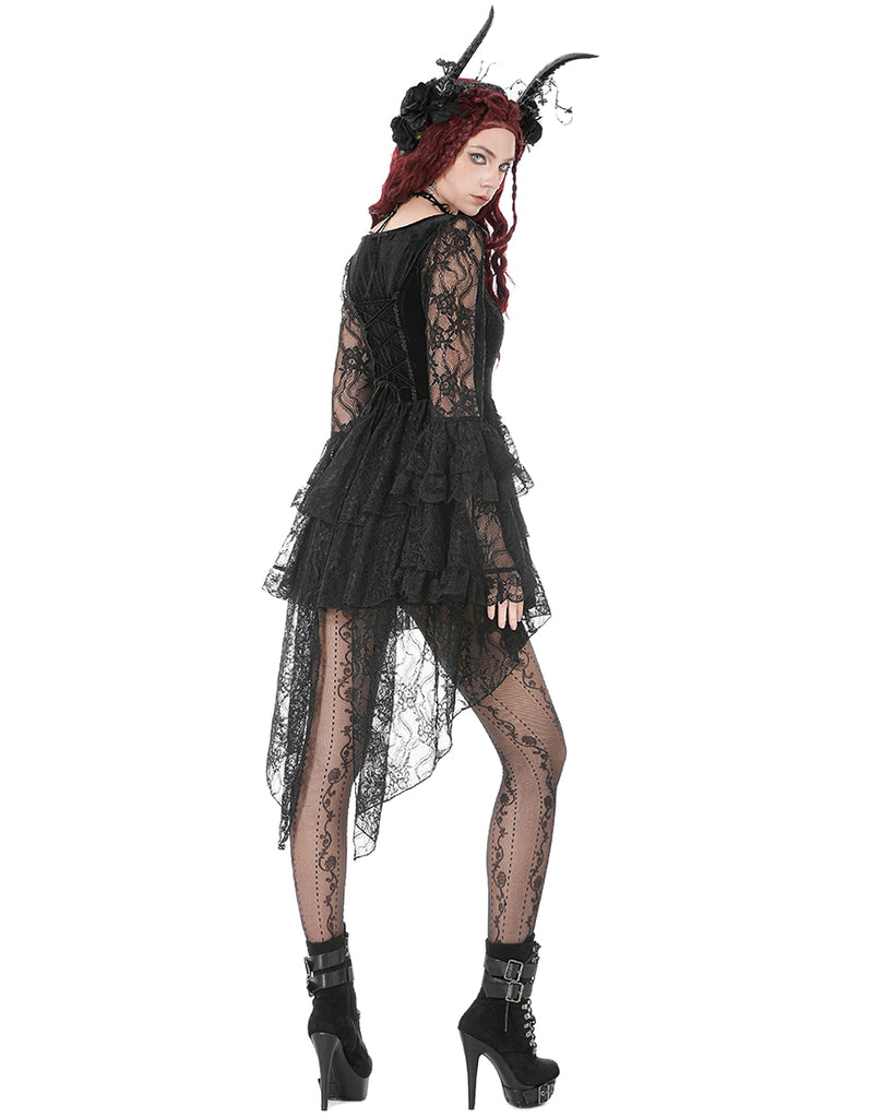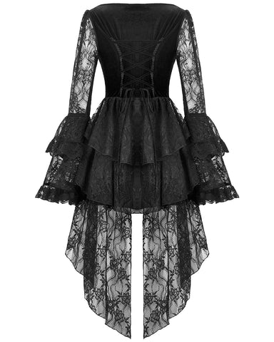 Dark In Love Womens Regency Gothic Lolita Layered Lace Dovetail Dress