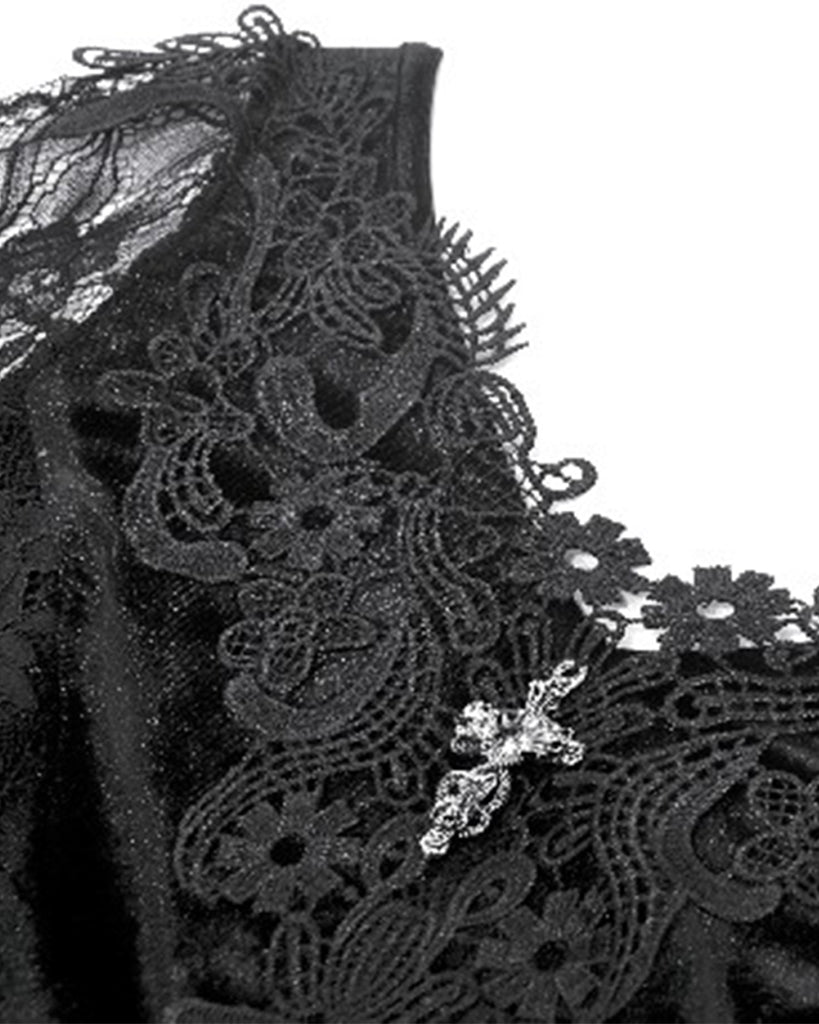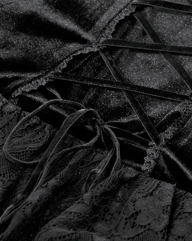 Eva Lady Womens Elegant Victorian Gothic Ruched Velvet & Lace Blouse Top