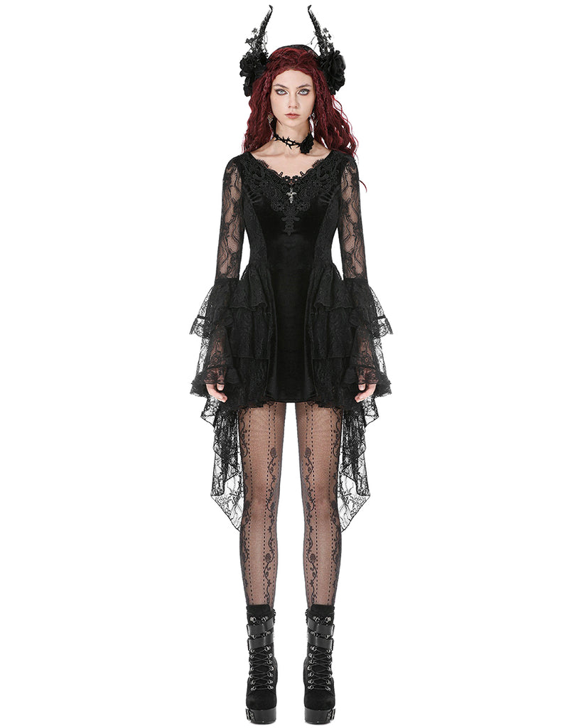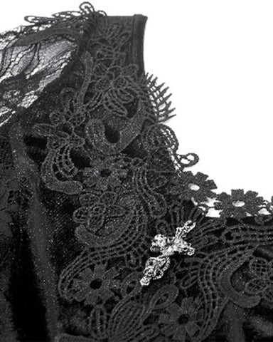 Dark In Love Womens Gothic Velvet & Lace Embroidered Crucifix Dress