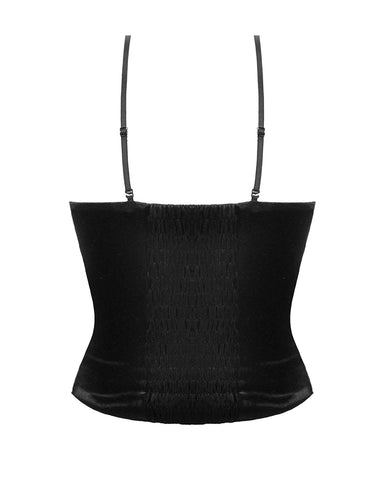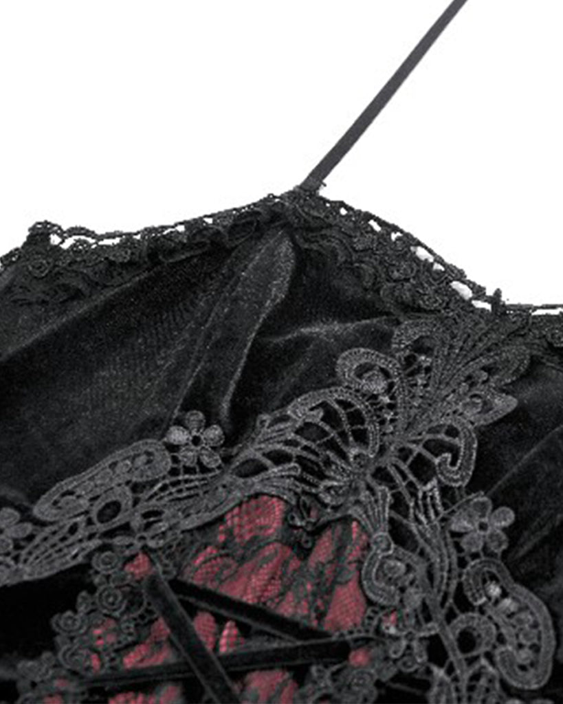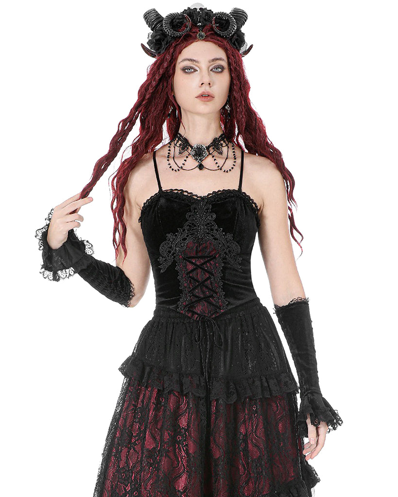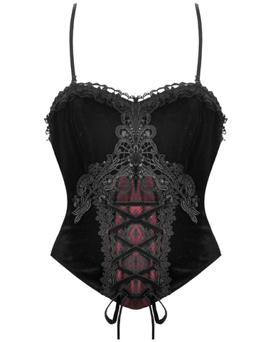Dark In Love Womens Gothic Velvet & Lace Applique Corset Top - Black & Red