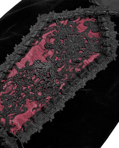 Punk Rave Morgana Womens Gothic Velvet Blouse Top - Red