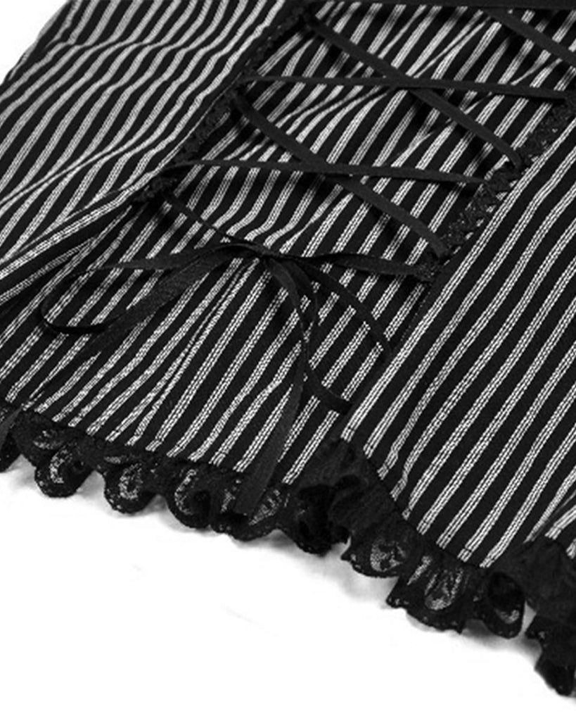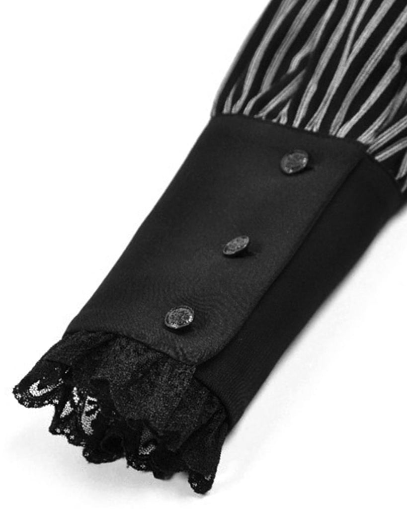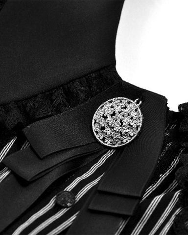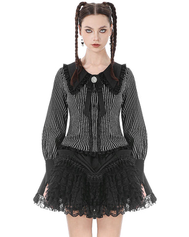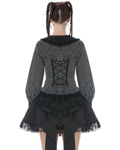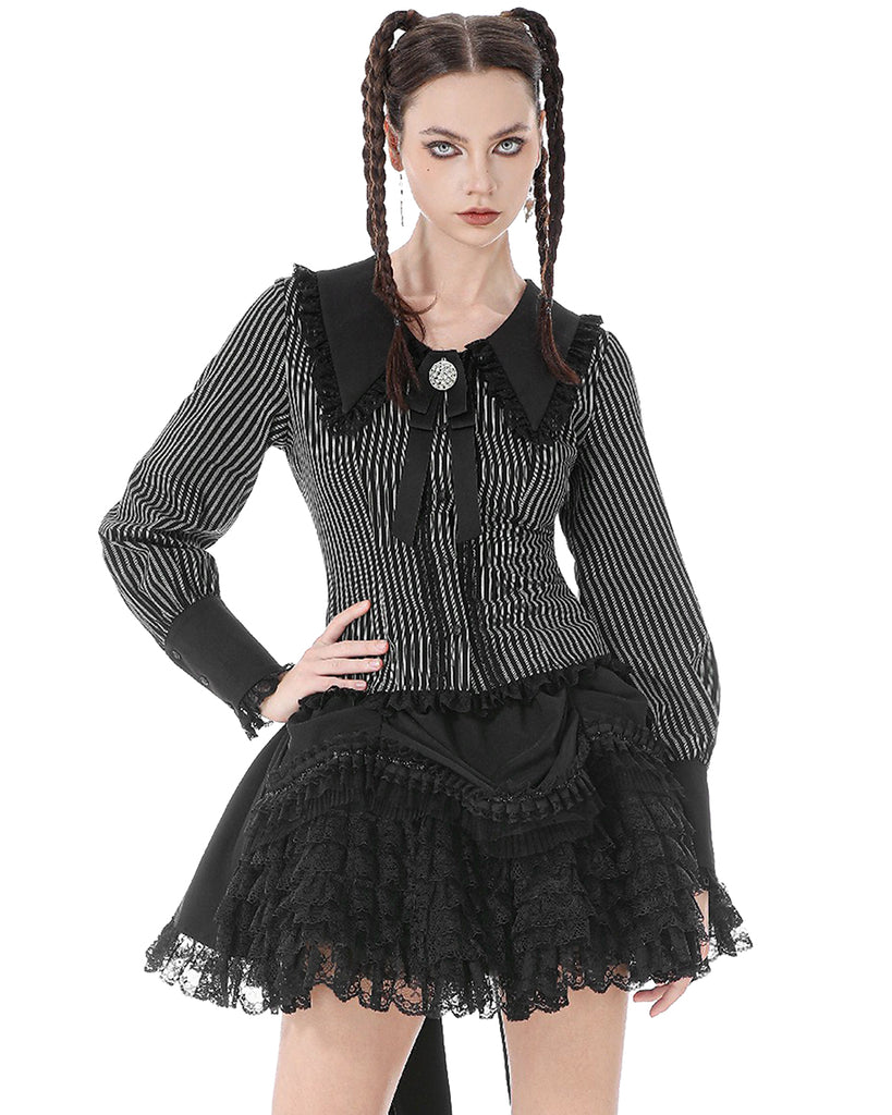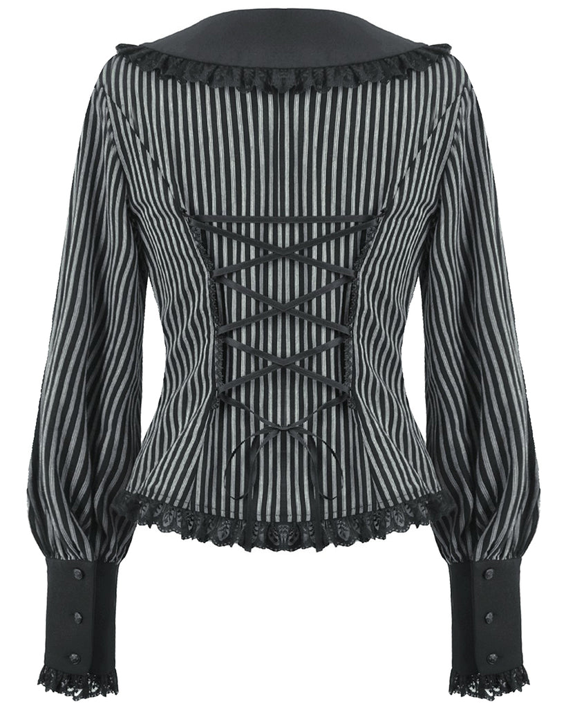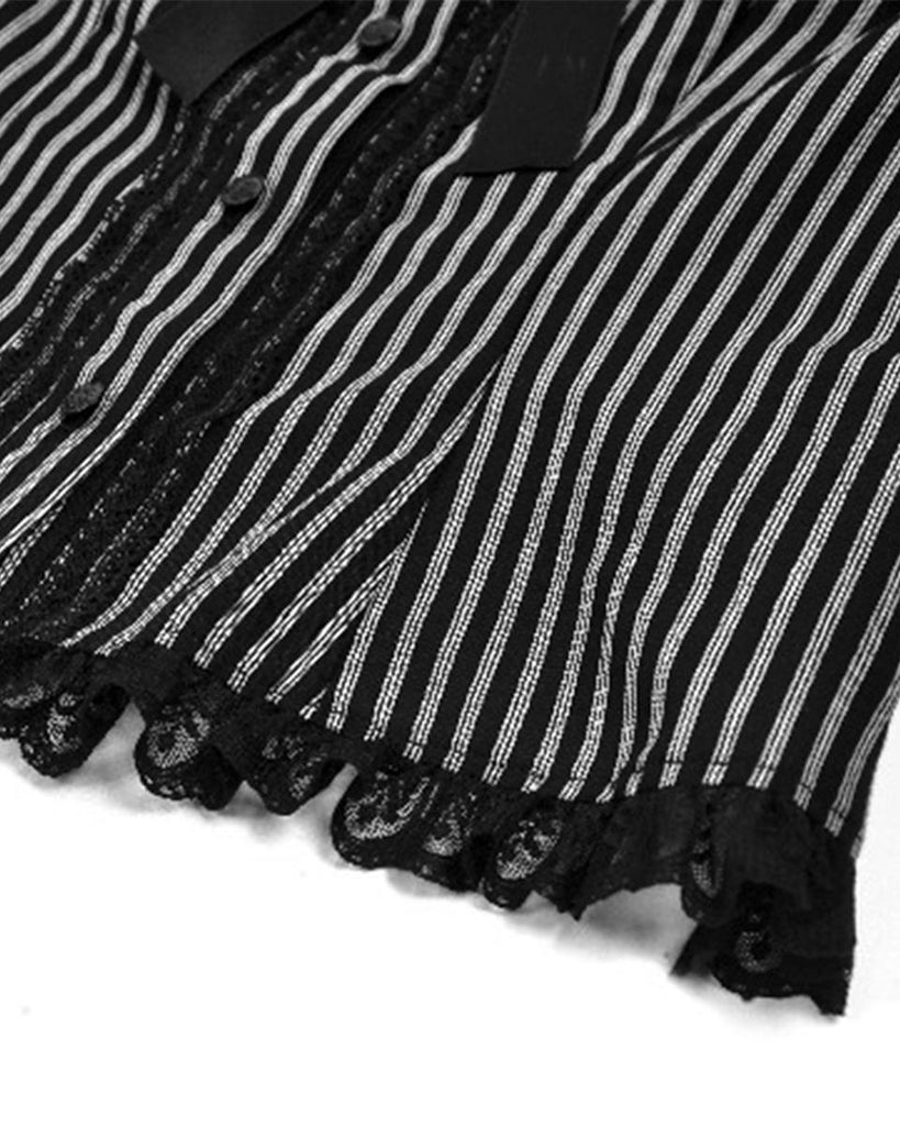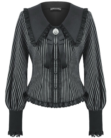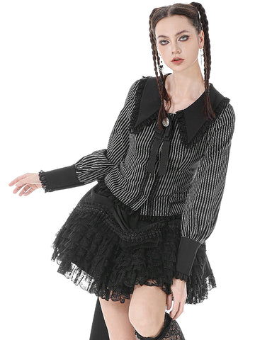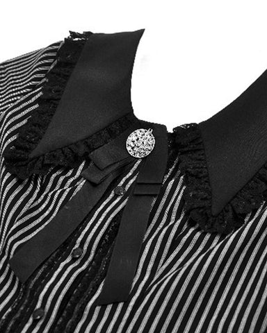 Dark In Love Womens Gothic Peter Pan Collar Striped Blouse Top