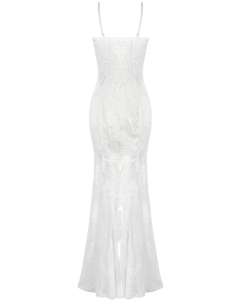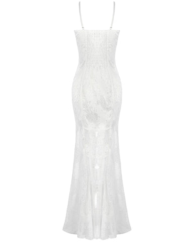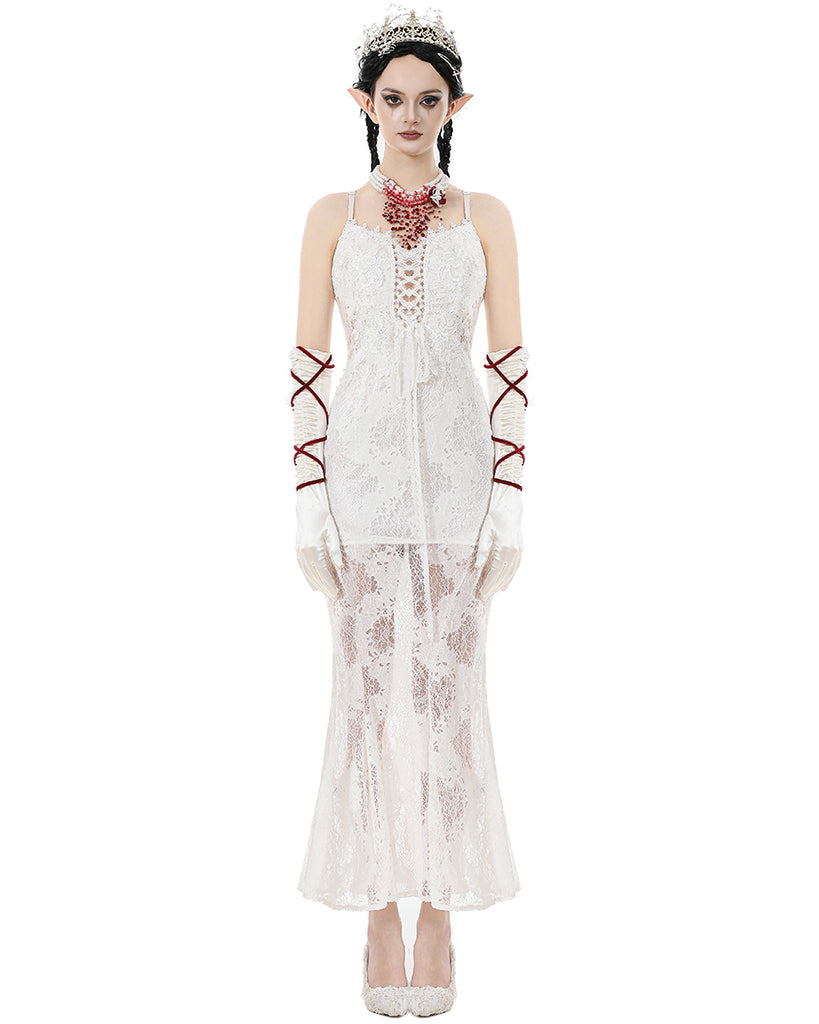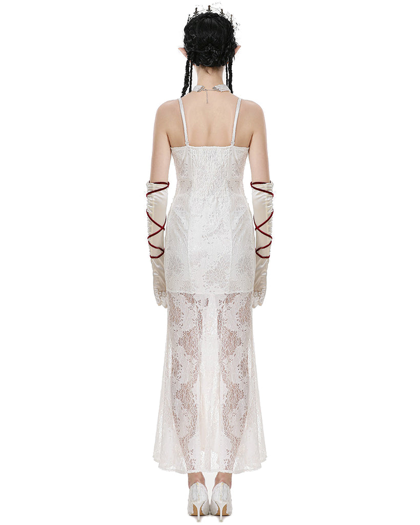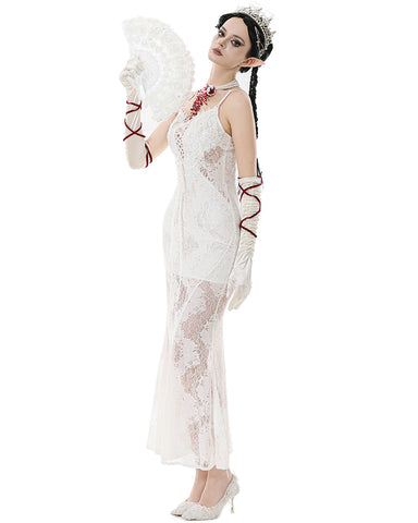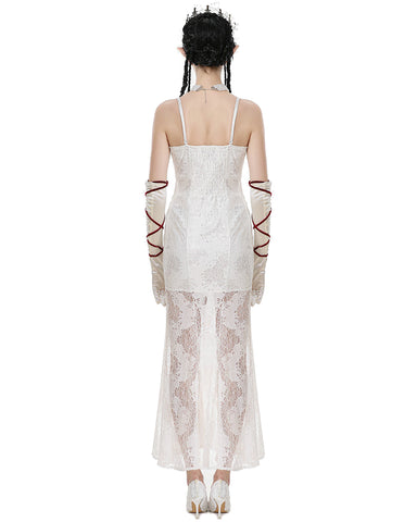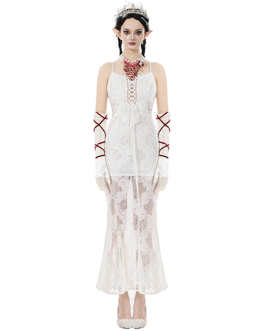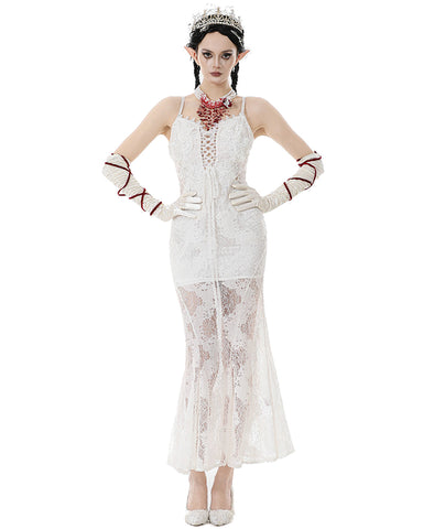 Dark In Love Womens Romantic Gothic Embroidered White Lace Mermaid Dress