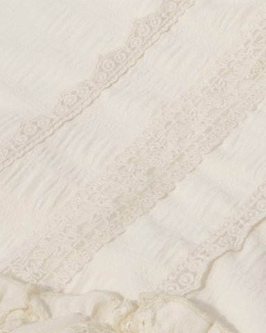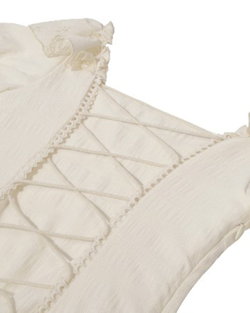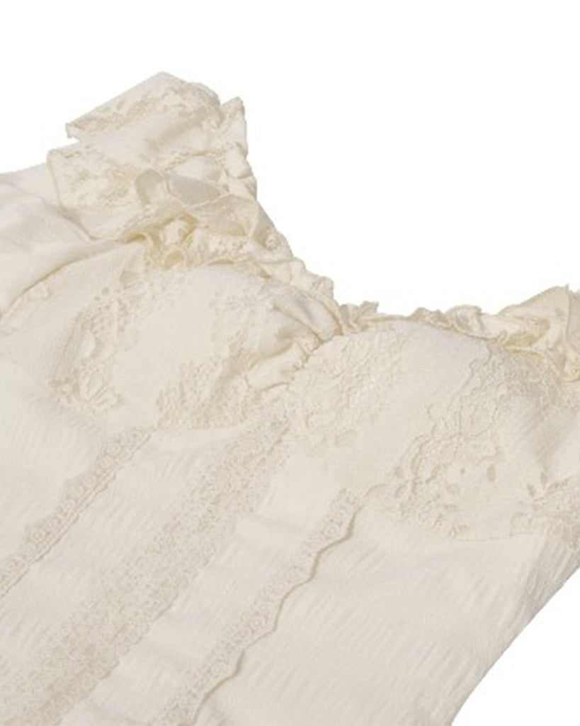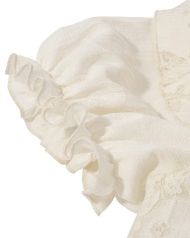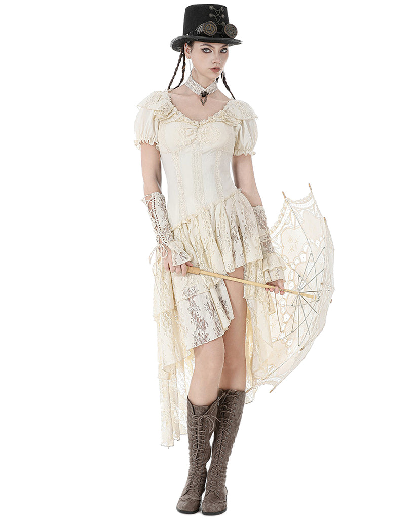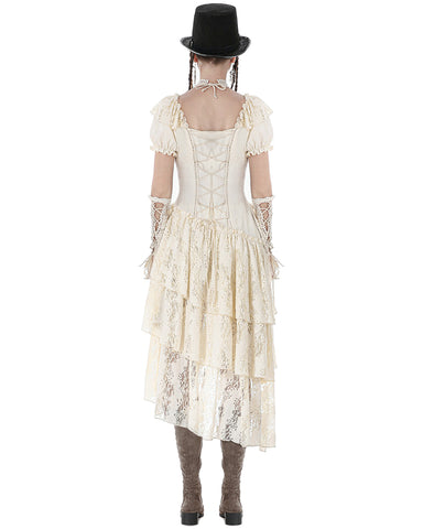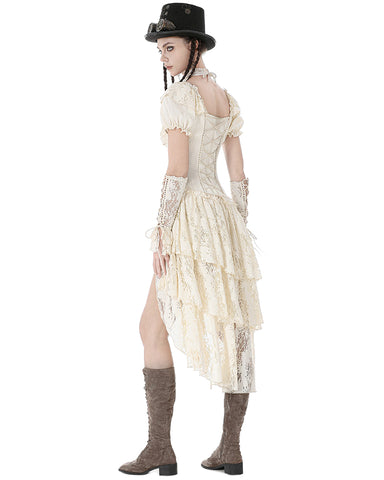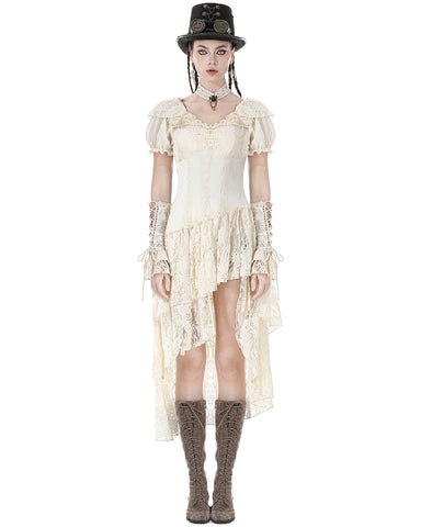 Dark In Love Womens Steampunk Asymmetric Lace Ruffle Dress - Vintage Off-White