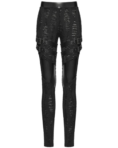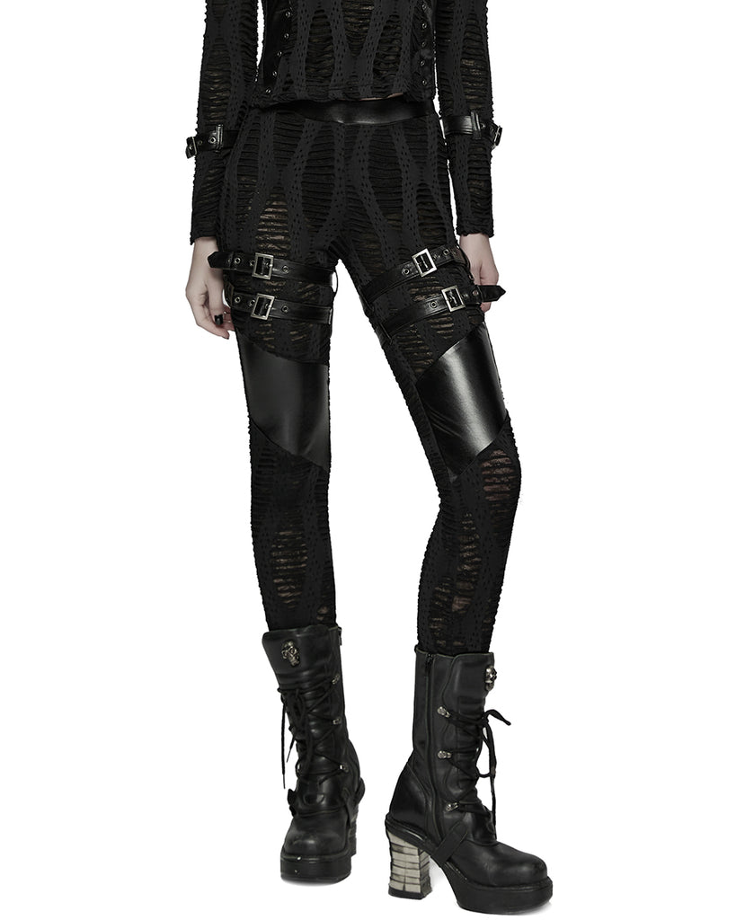 Punk Rave Womens Apocalyptic Gothic Spliced Mesh Strapping Leggings