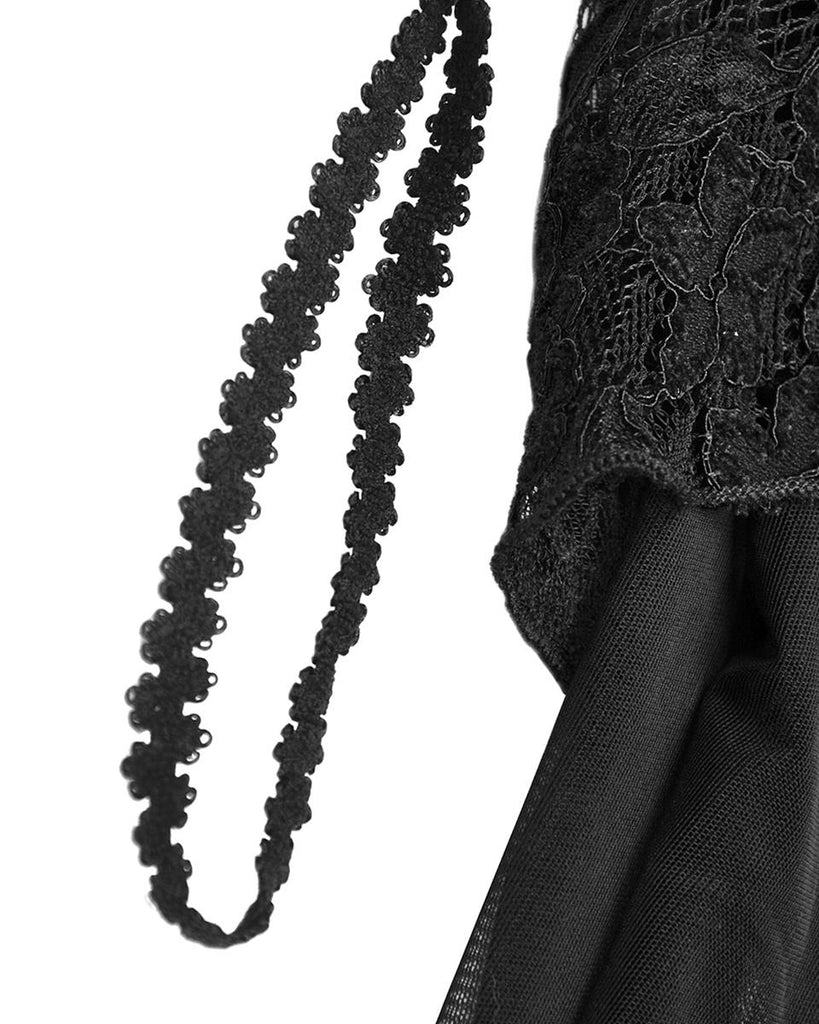 Dark In Love Womens Regency Gothic Lolita Layered Lace Dovetail Dress