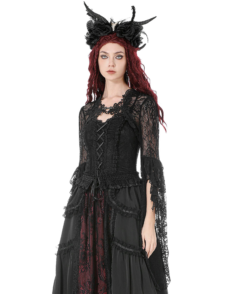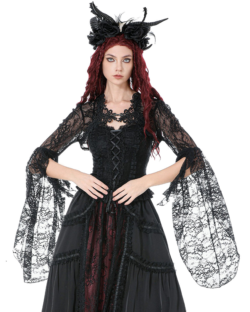 Dark In Love Womens Elegant Gothic Lace Bell Sleeve Bolero Shrug