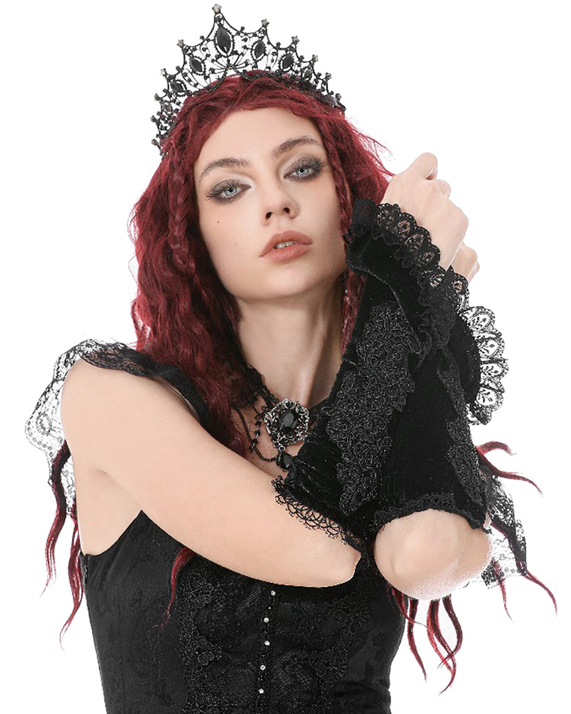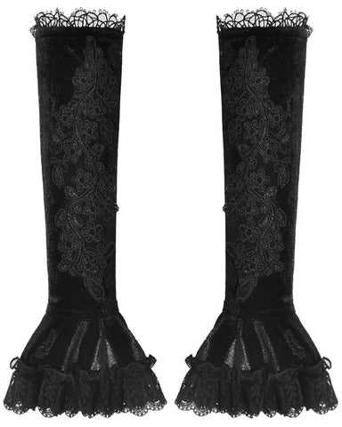 Dark In Love Womens Gothic Velvet & Lace Embroidered Armwarmer Gloves
