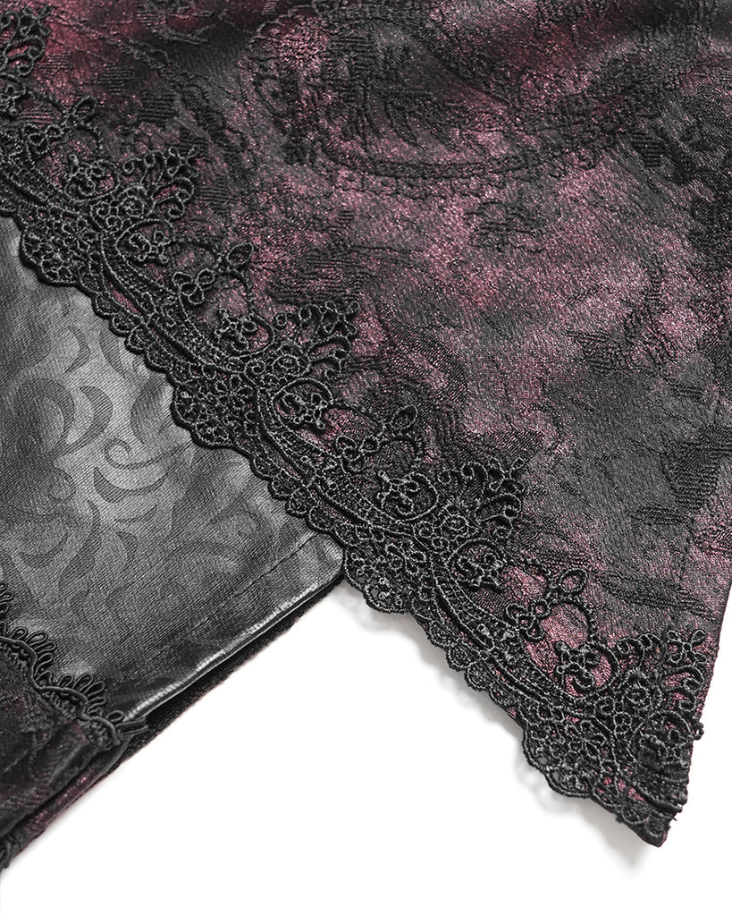 Dark In Love Womens Gothic Jacquard & Lace Keyhole Blouse Top
