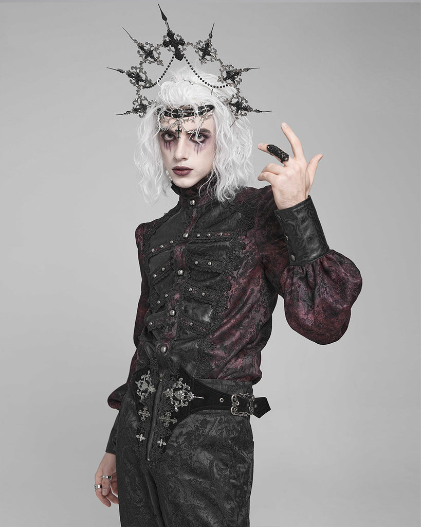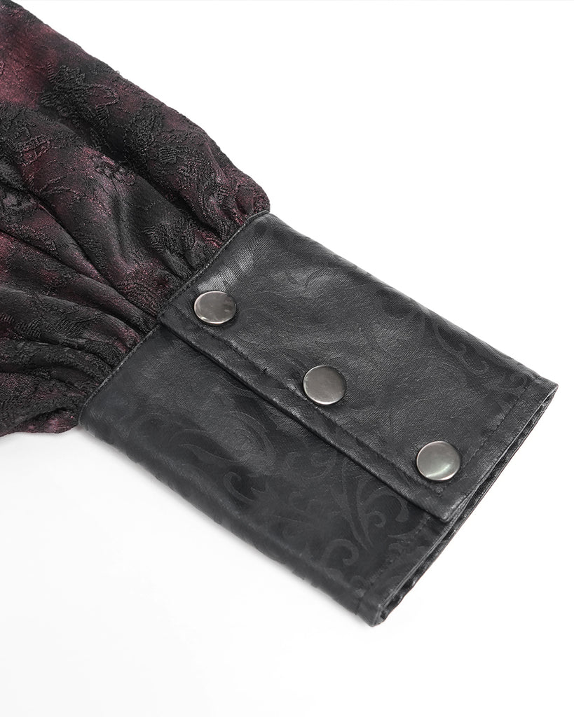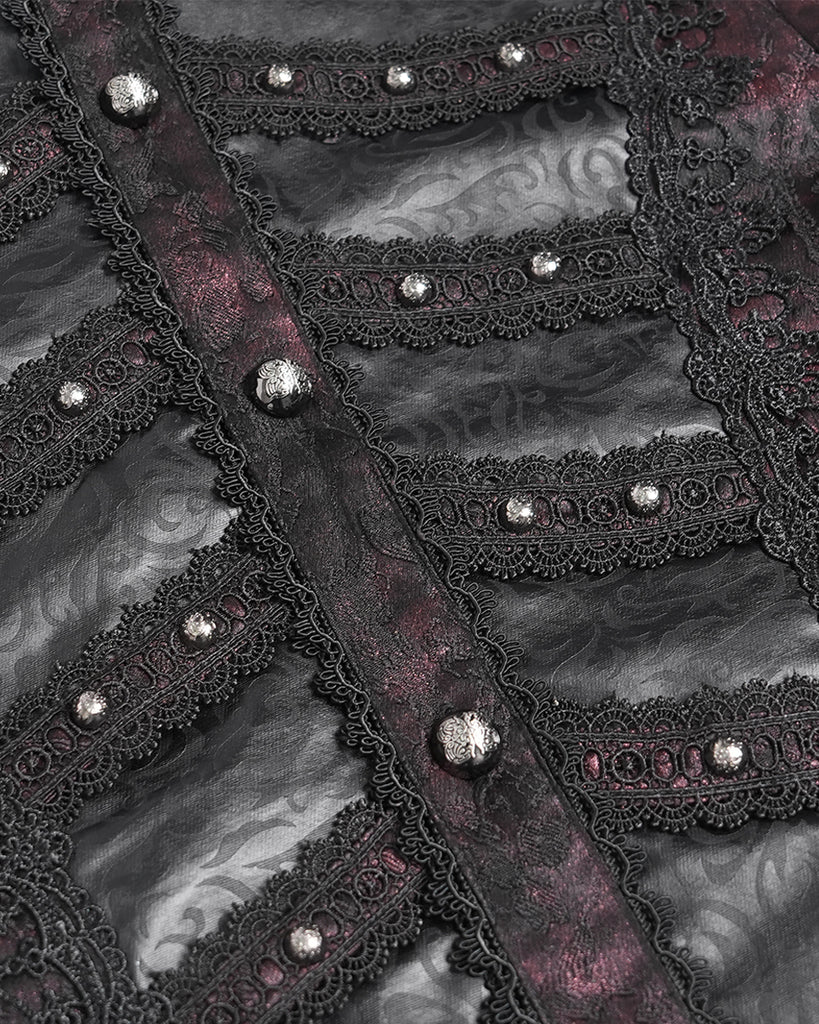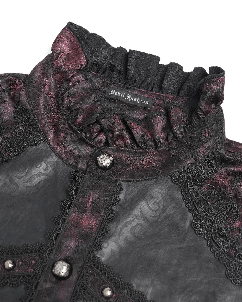 Devil Fashion Mens Dark Gothic Aristocrat Studded Jacquard Dress Shirt - Red & Black