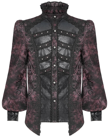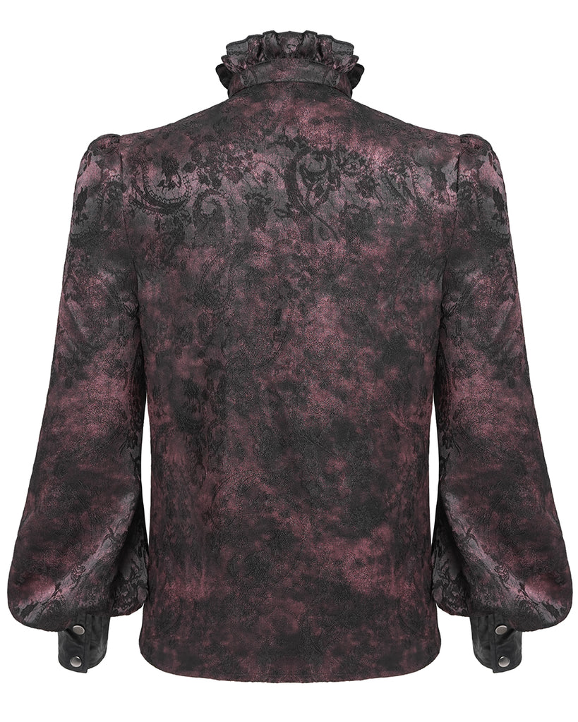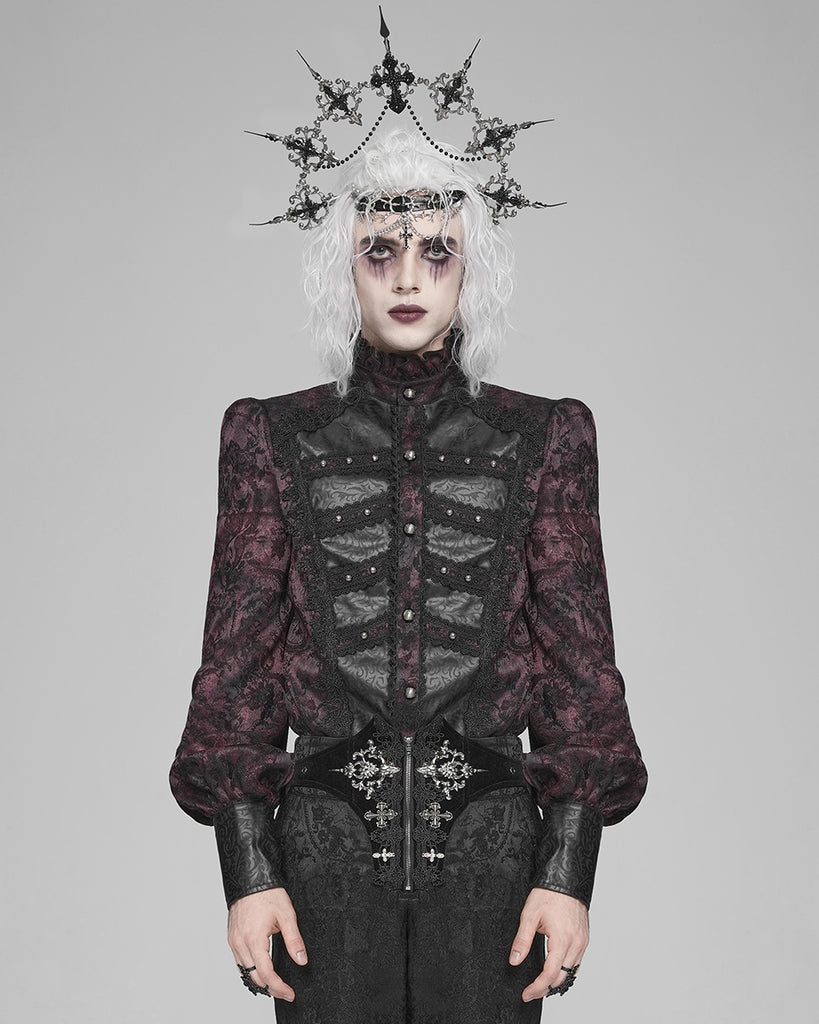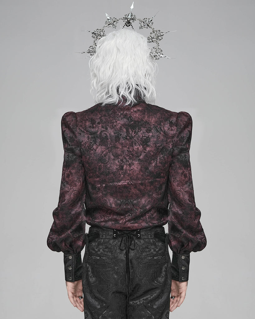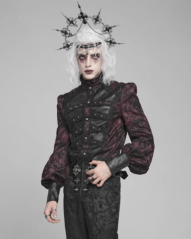 Devil Fashion Mens Dark Gothic Aristocrat Studded Jacquard Dress Shirt - Red & Black