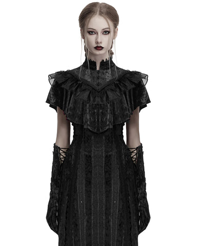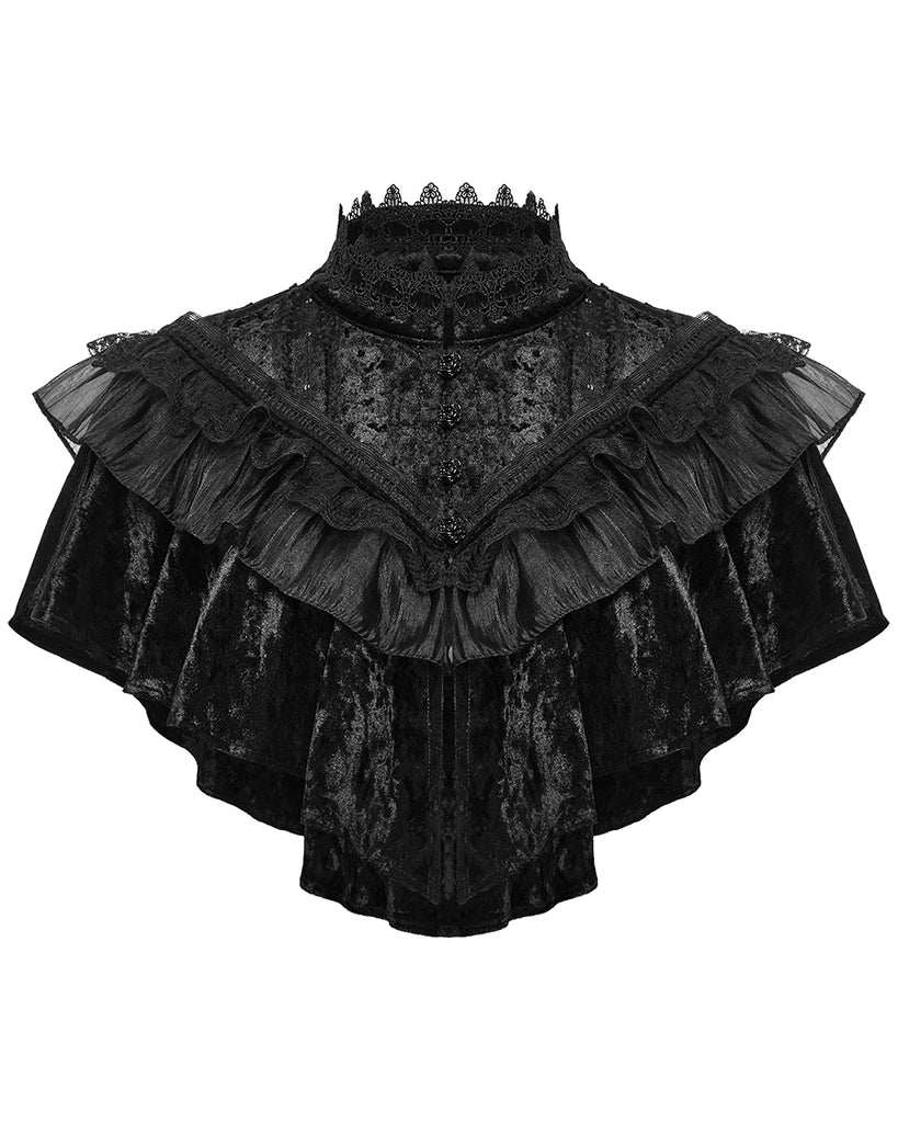 Punk Rave Daily Life Womens Long Gothic Crushed Velvet & Lace Bolero Cape - Black