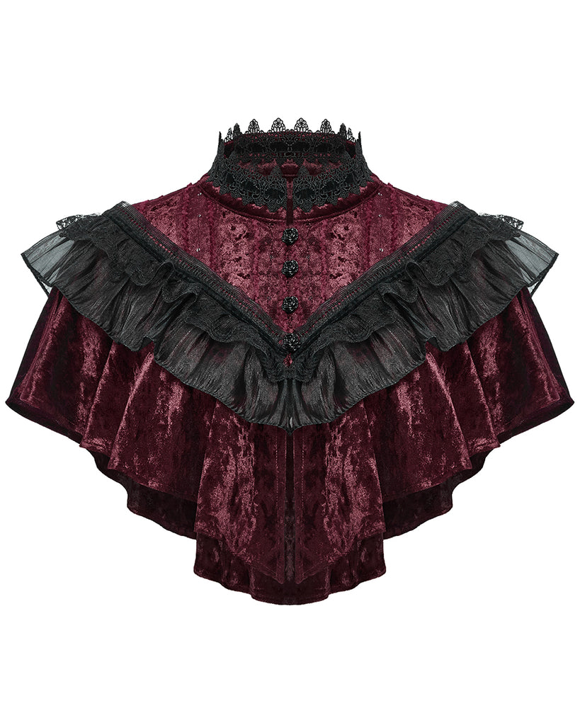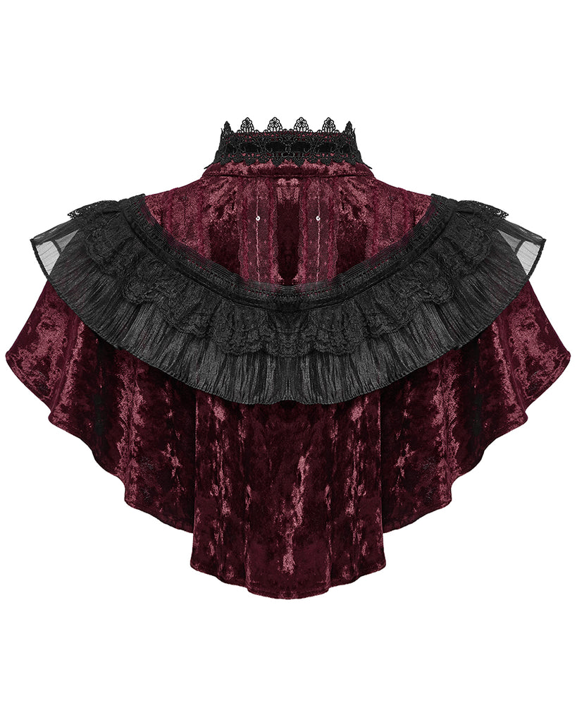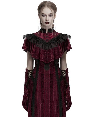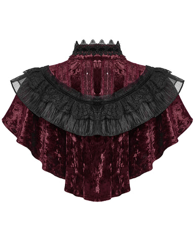 Punk Rave Daily Life Womens Long Gothic Crushed Velvet & Lace Bolero Cape - Red