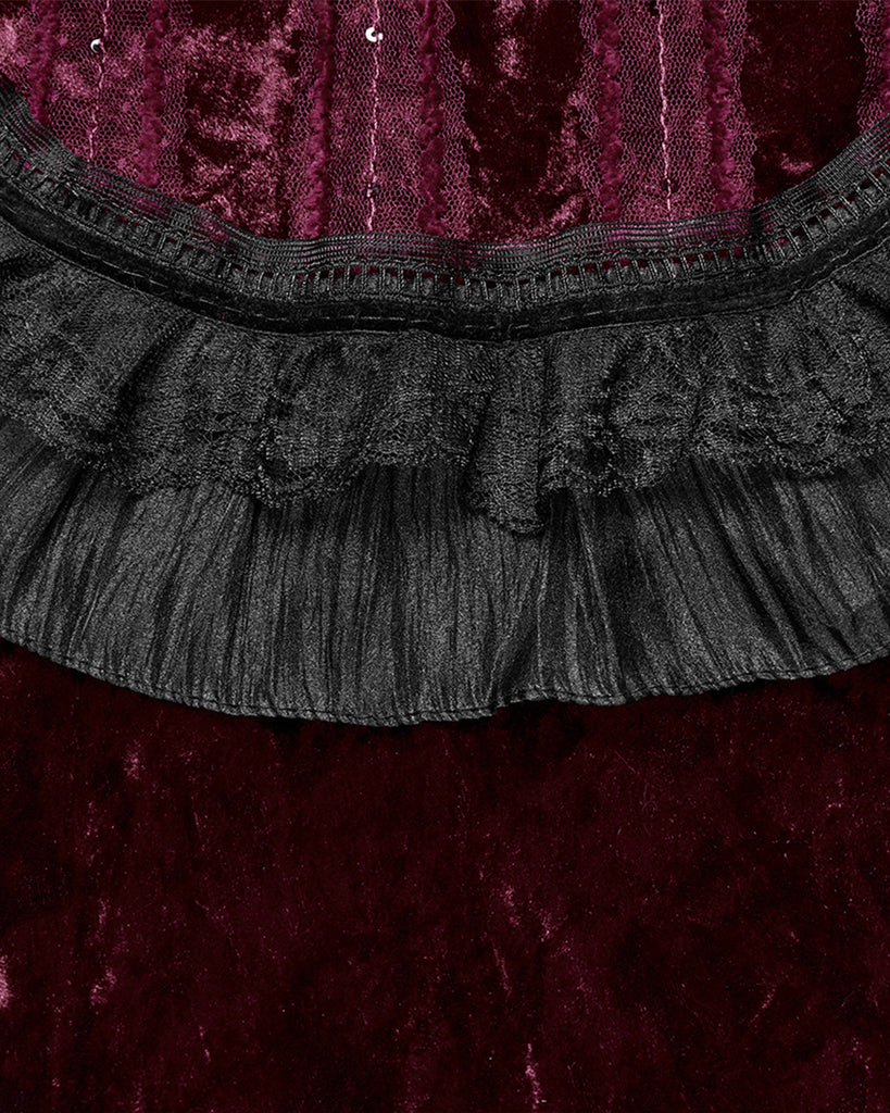 Eva Lady Womens Elegant Victorian Gothic Ruched Velvet & Lace Blouse Top