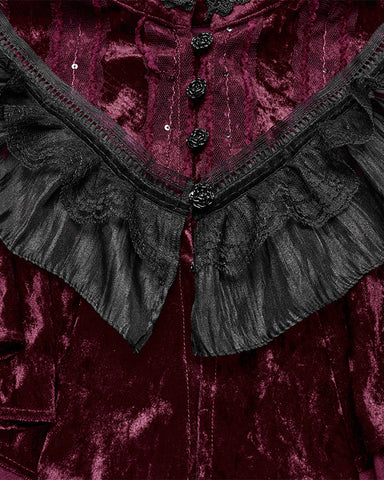 Punk Rave Morgana Womens Gothic Velvet Blouse Top - Red