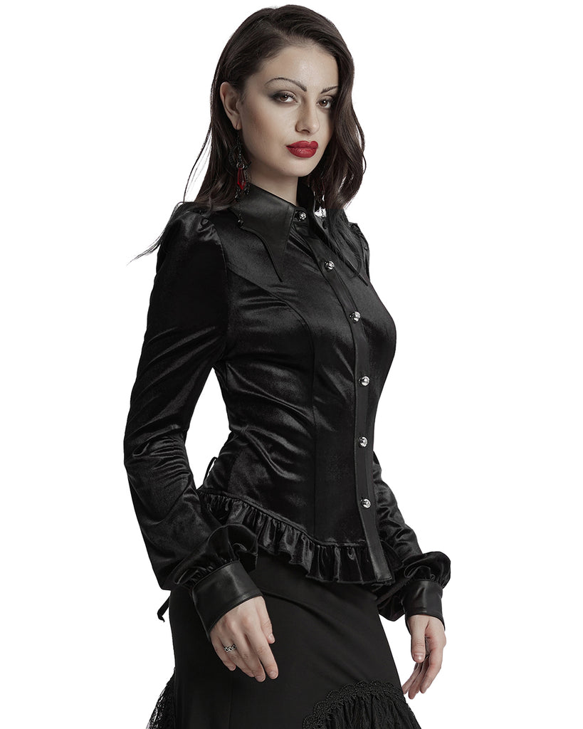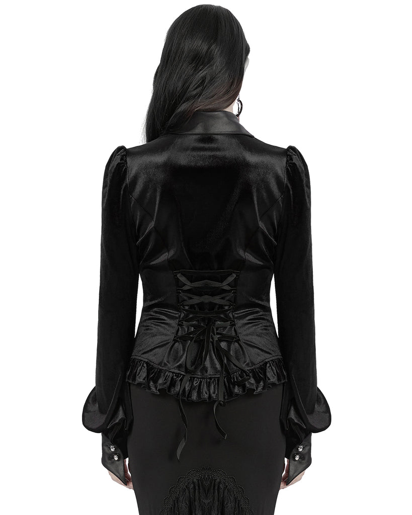 Eva Lady Womens Elegant Victorian Gothic Ruched Velvet & Lace Blouse Top