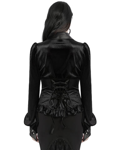 Punk Rave Vesperina Womens Gothic Velvet Riding Jacket - Black
