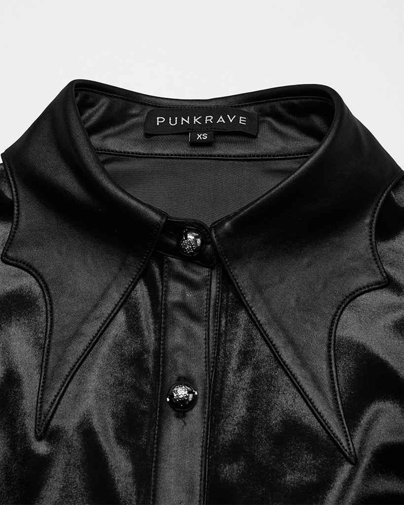 Punk Rave Daily Life Gothic Gradient Velvet Bat Collar Blouse Top - Black