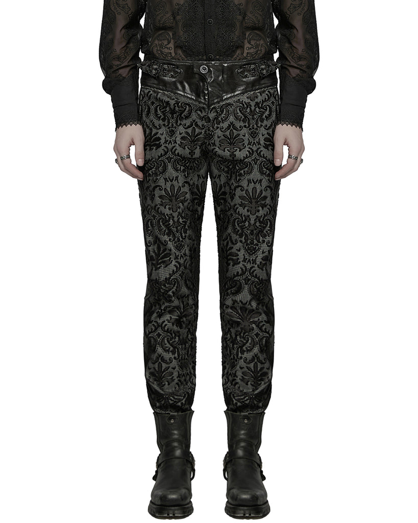 Punk Rave Mens Gothic Aristocrat Jacquard Contrast Dress Pants