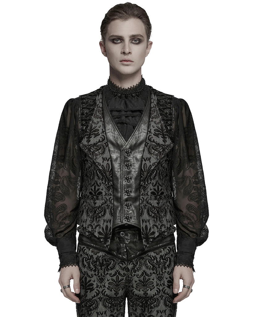 Devil Fashion Cavalier Mens Steampunk Tailcoat - Black Damask