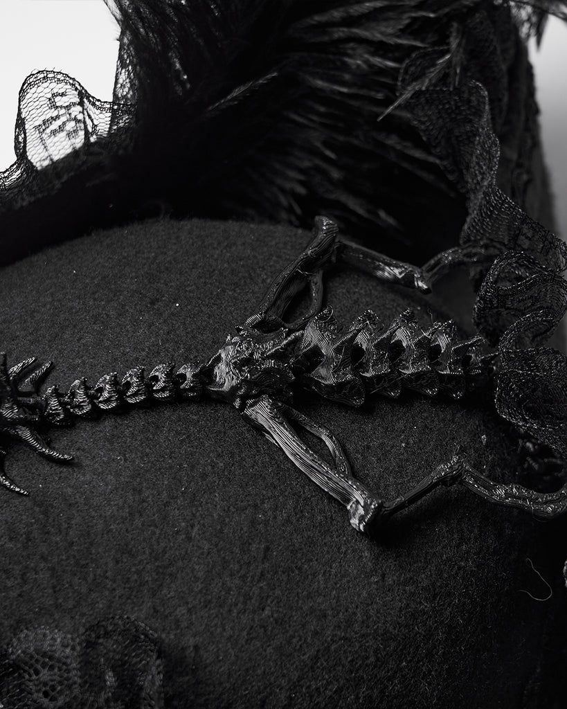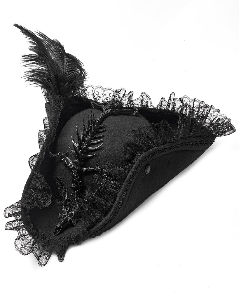 Punk Rave Unisex Gothic Dragon Spine Feathered Tricorn Hat