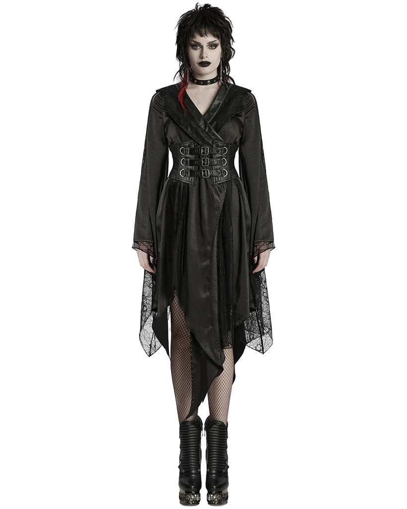 Punk Rave Womens Dark Gothic Lolita Lace Inset Kinono Dress Jacket