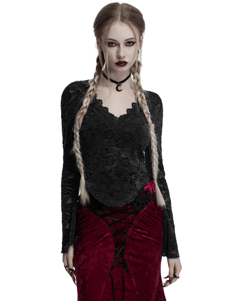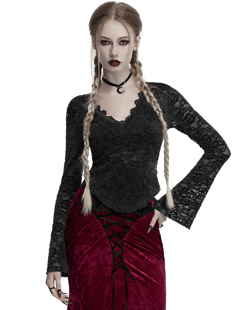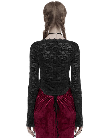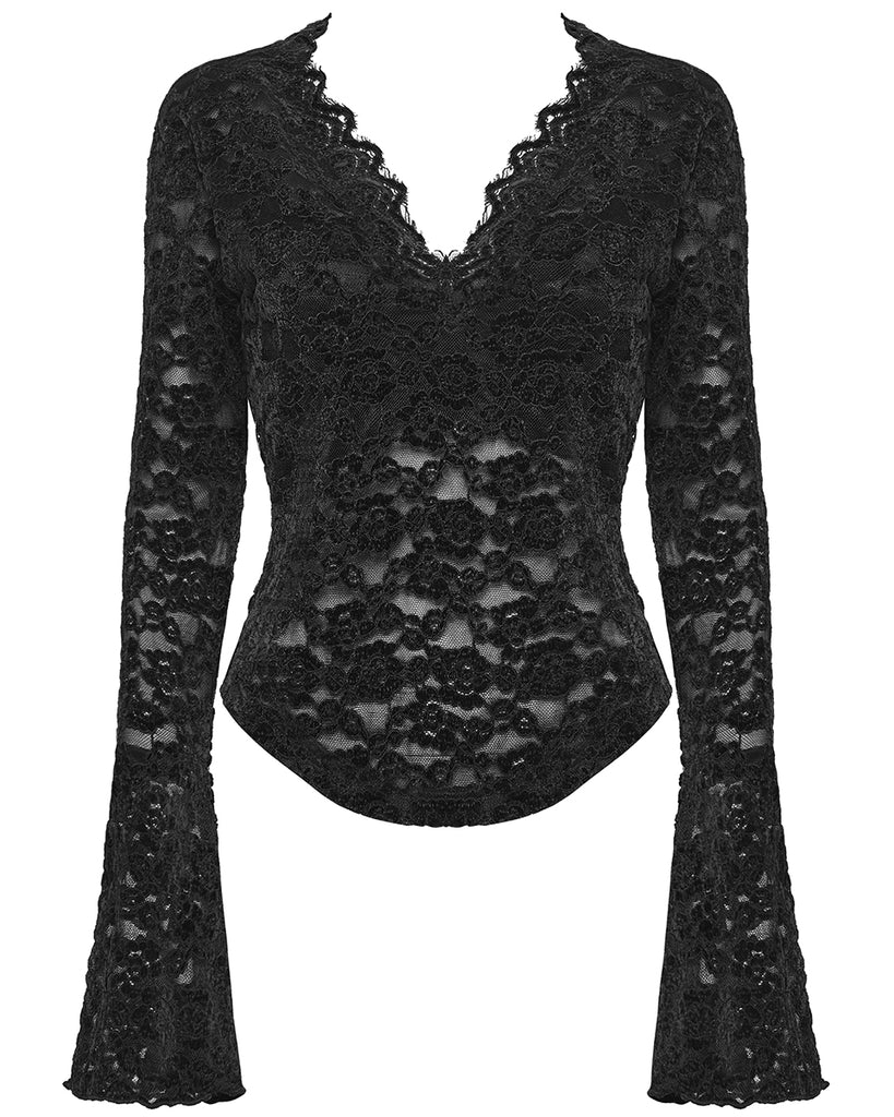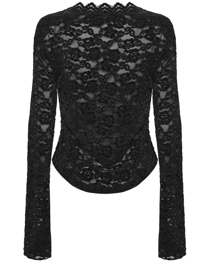 Punk Rave Womens Elegant Floral Lace V-Neck Top - Black