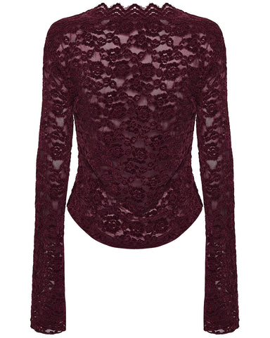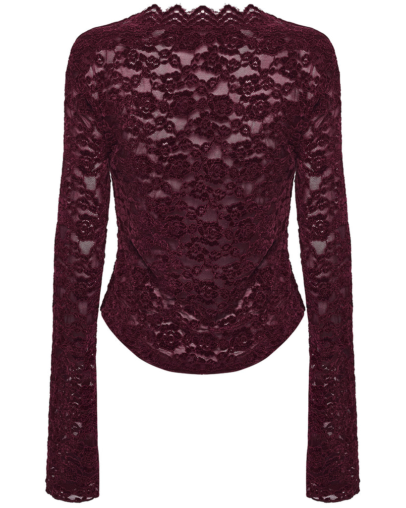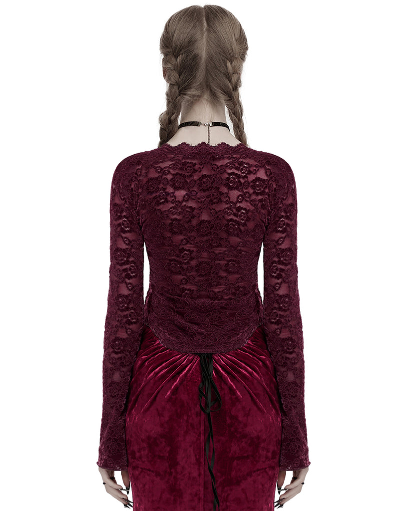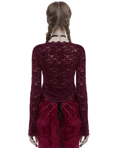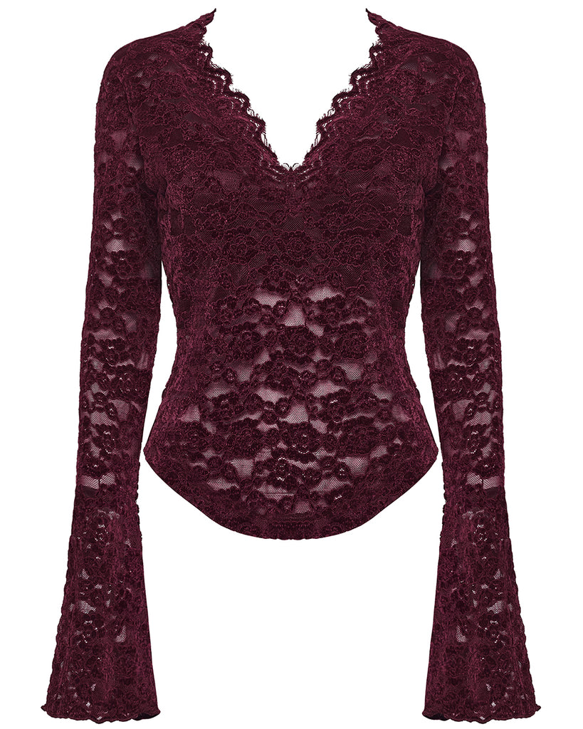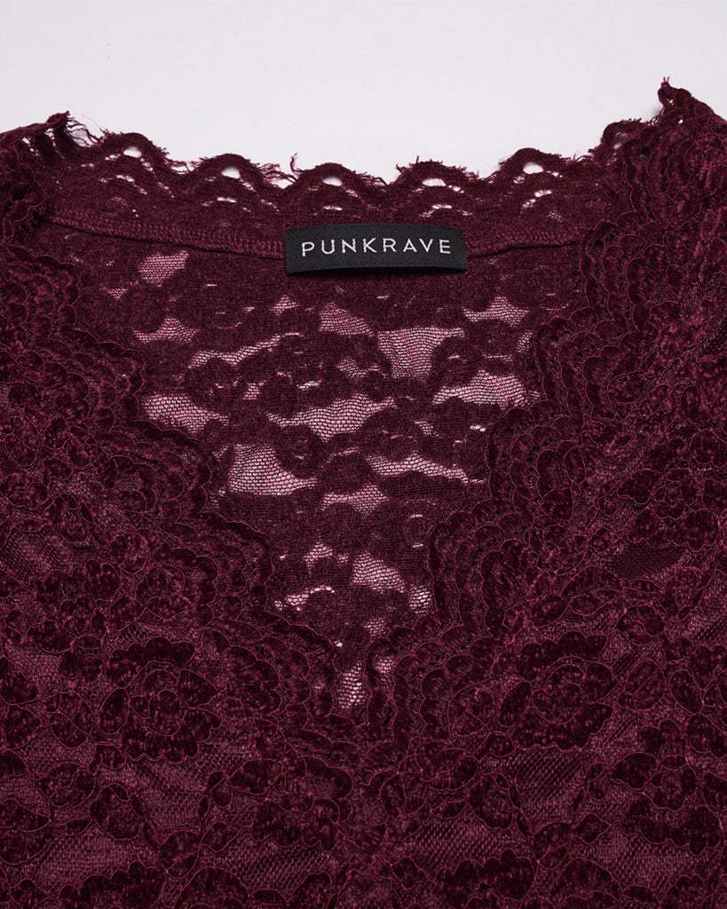 Punk Rave Womens Elegant Floral Lace V-Neck Top - Red