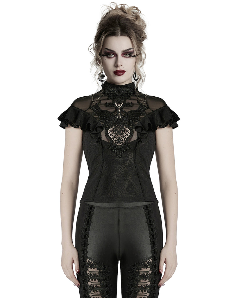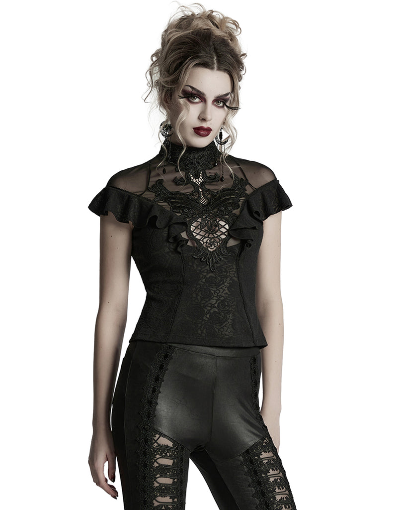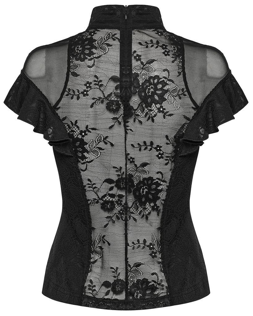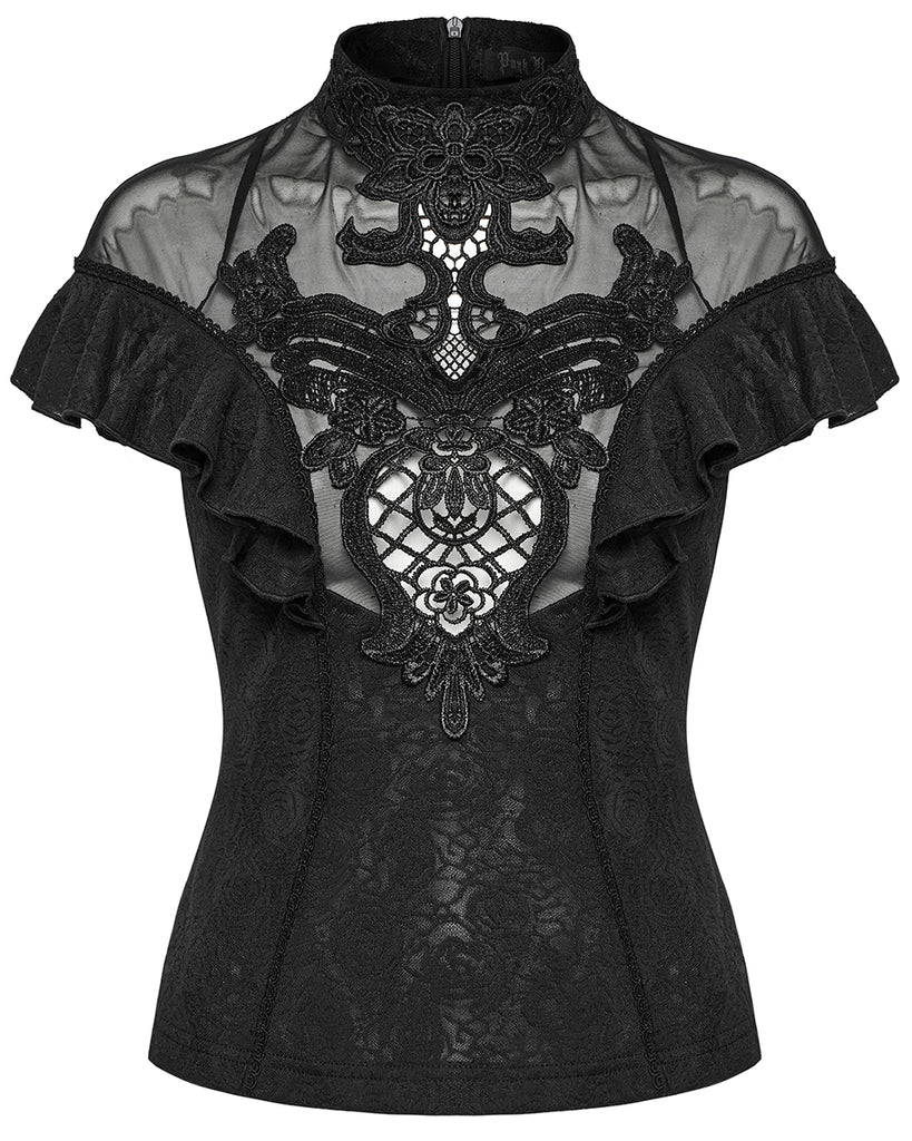 Punk Rave Womens Elegant Gothic Floral Lace Applique Blouse Top