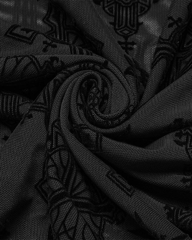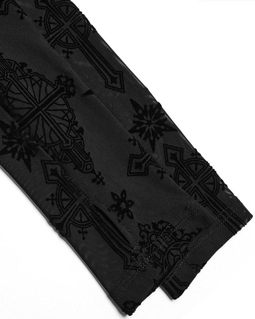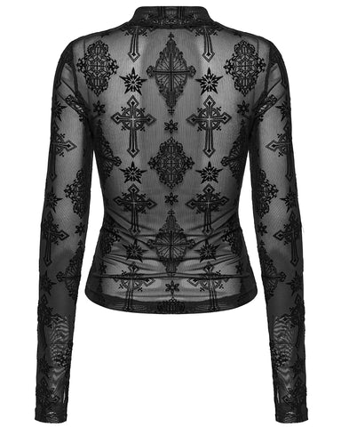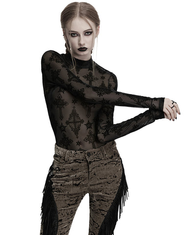 Punk Rave Womens Gothic Flocked Mesh Crucifix Top