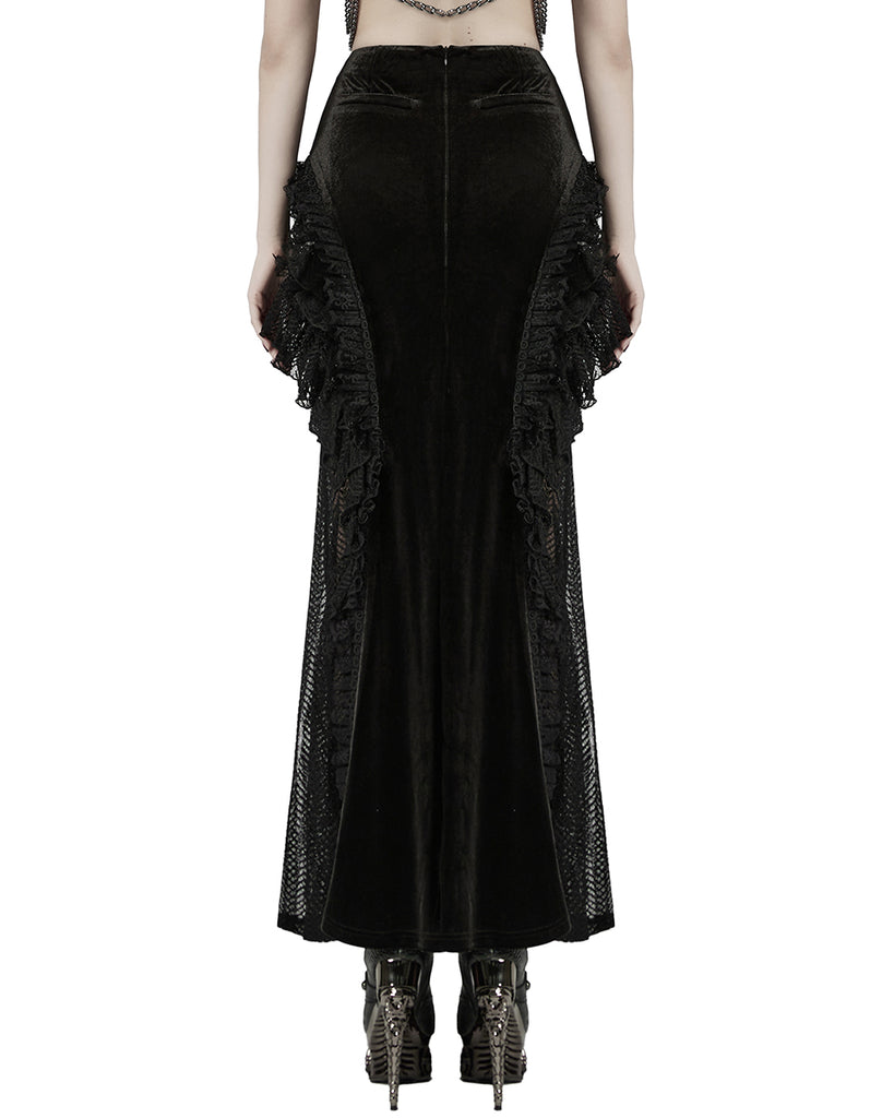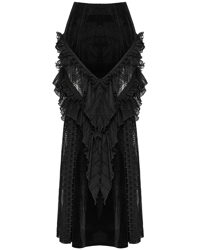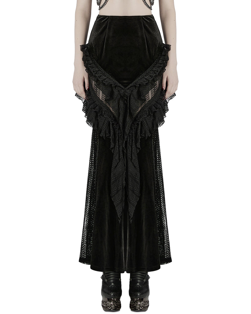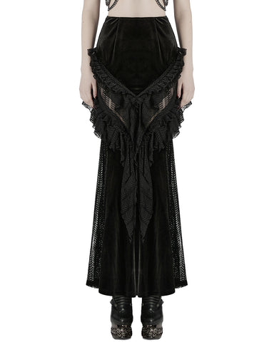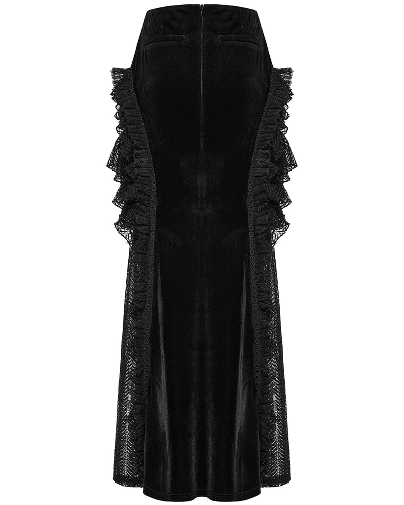 Punk Rave Womens Long Victorian Gothic Velvet & Lace Maxi Skirt