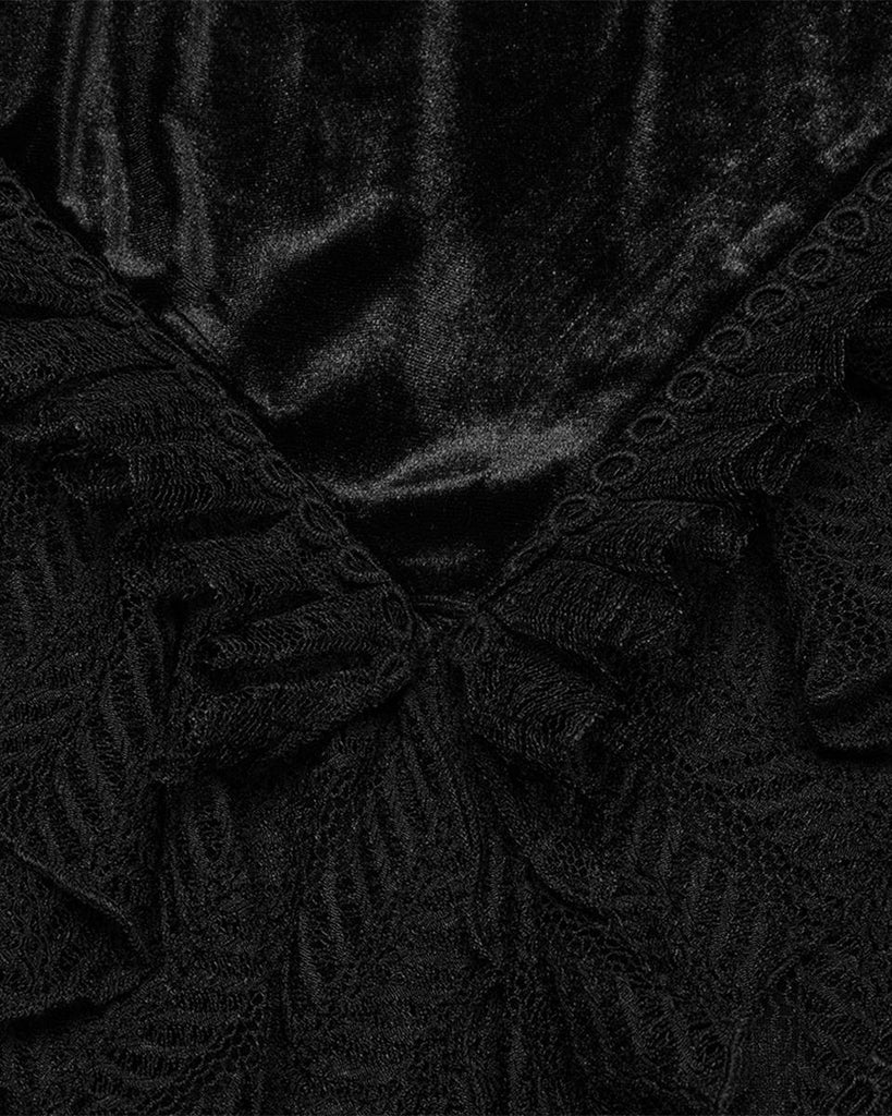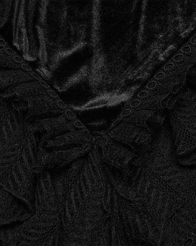 Eva Lady Womens Elegant Victorian Gothic Ruched Velvet & Lace Blouse Top