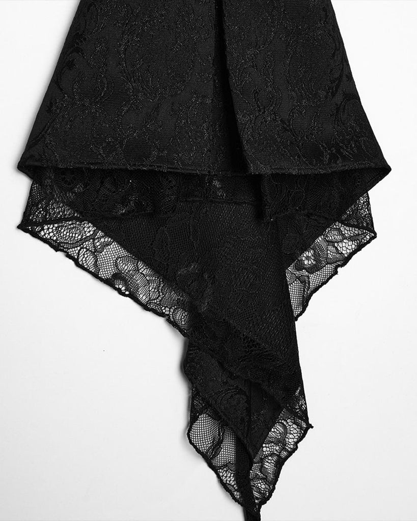 Dark In Love Womens Regency Gothic Lolita Layered Lace Dovetail Dress