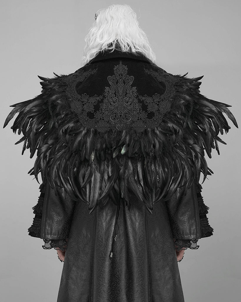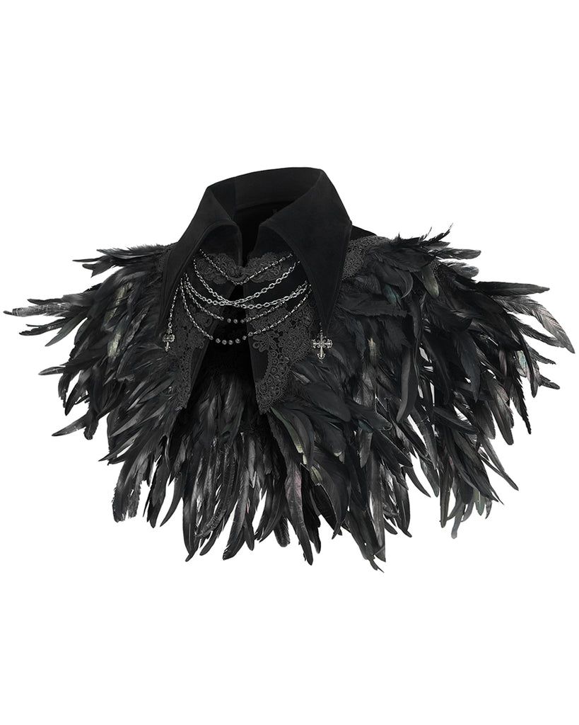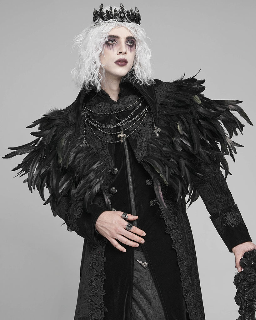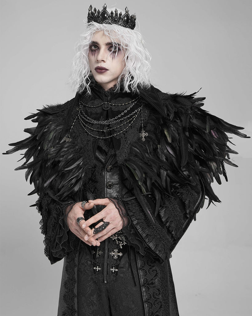 Devil Fashion Mens Gothic Aristocrat Chained & Feathered Shoulder Cape Cloak