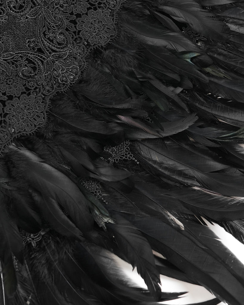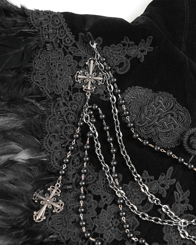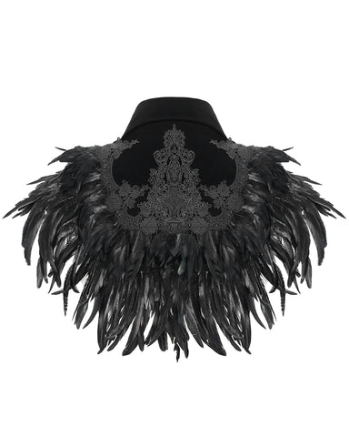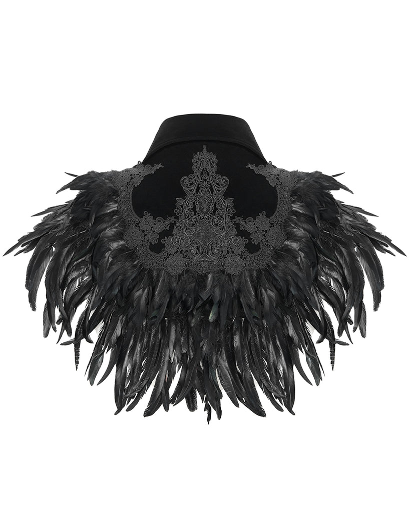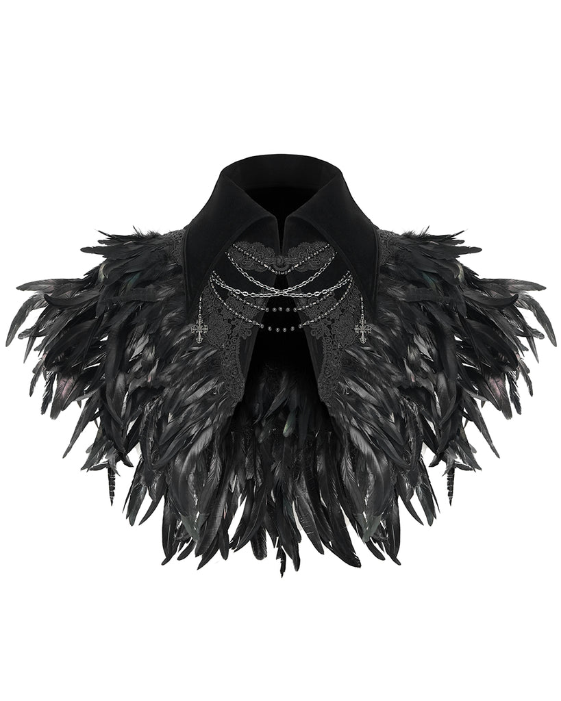 Devil Fashion Mens Gothic Aristocrat Chained & Feathered Shoulder Cape Cloak