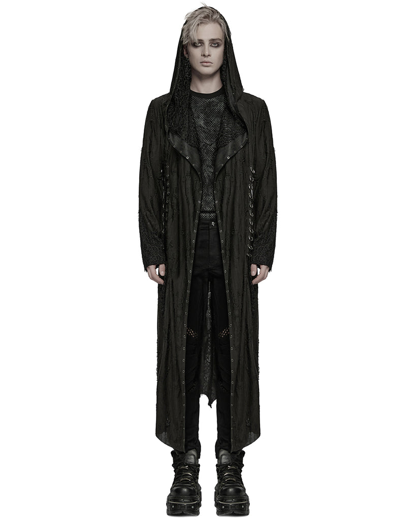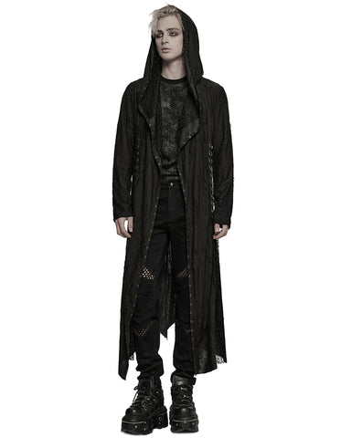 Punk Rave Mens Apocalyptic Gothic Broken Knit Hooded Piercing Cloak Jacket