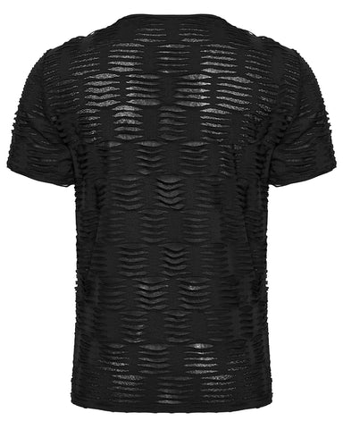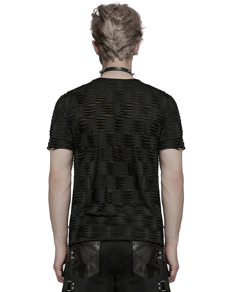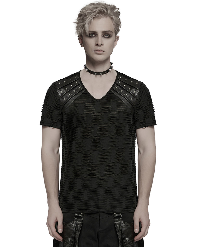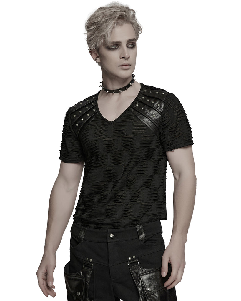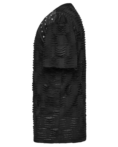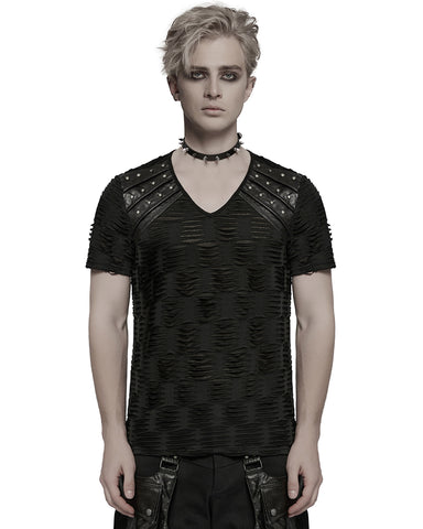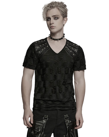 Punk Rave Mens Apocalyptic Gothic Shredded & Studded Broken Knit T Shirt Top