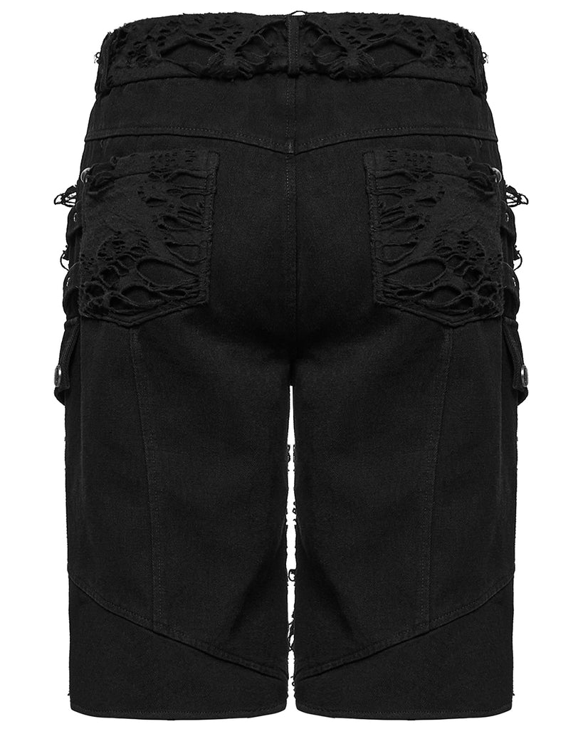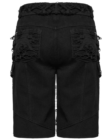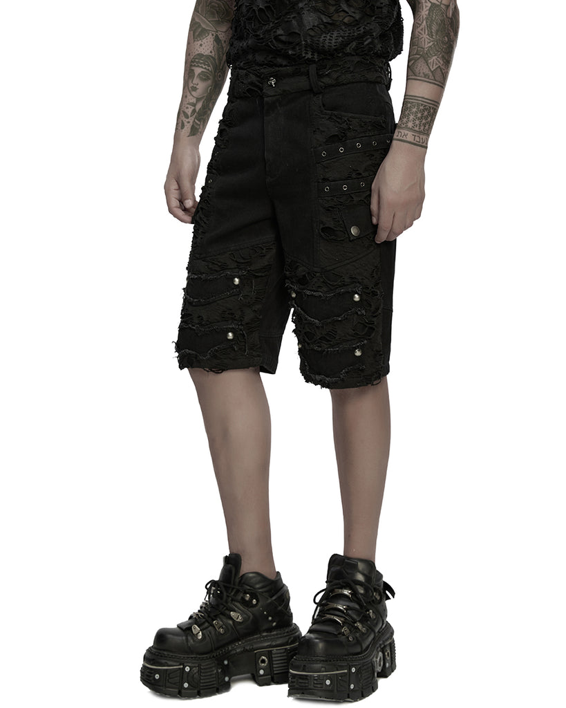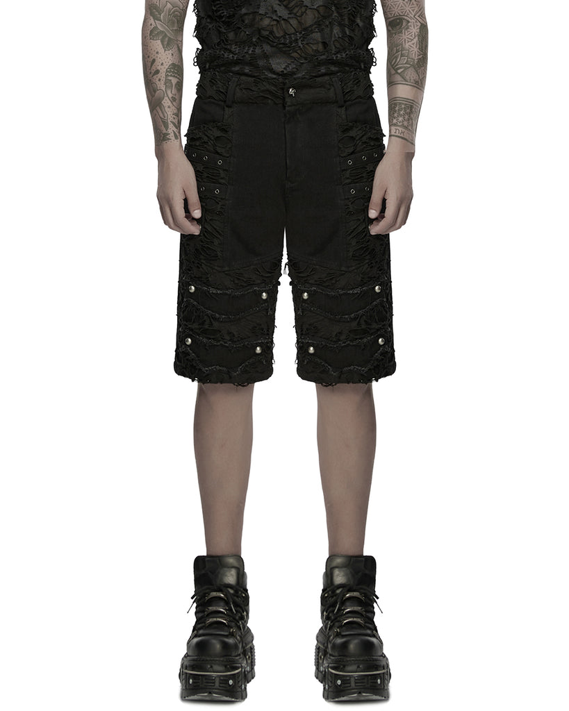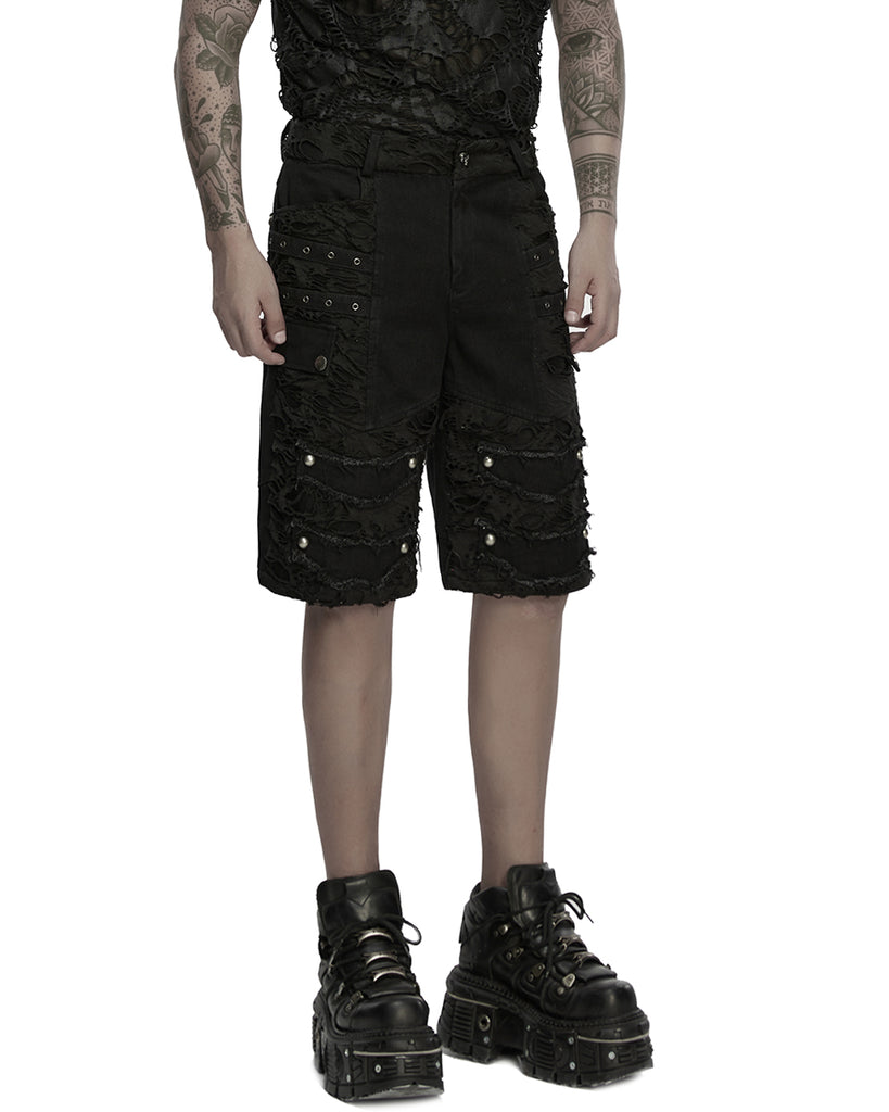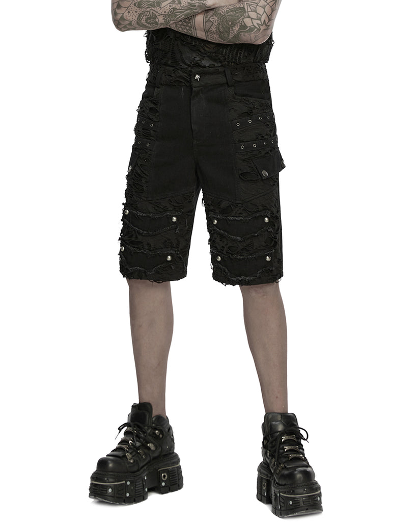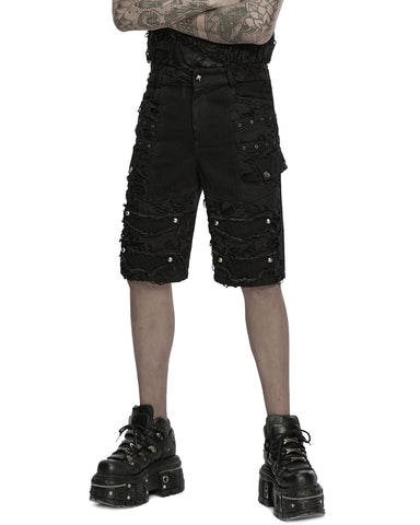 Punk Rave Mens Apocalyptic Punk Studded & Shredded Cutoff Shorts