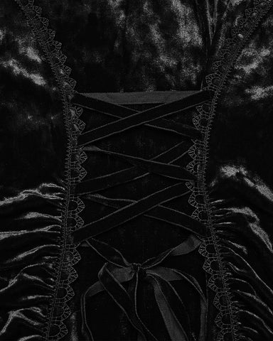 Eva Lady Womens Elegant Victorian Gothic Ruched Velvet & Lace Blouse Top