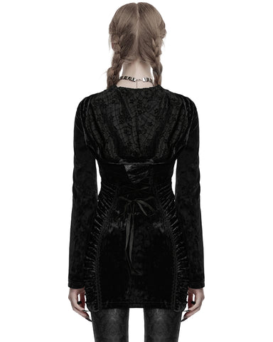 Punk Rave Vesperina Womens Gothic Velvet Riding Jacket - Black
