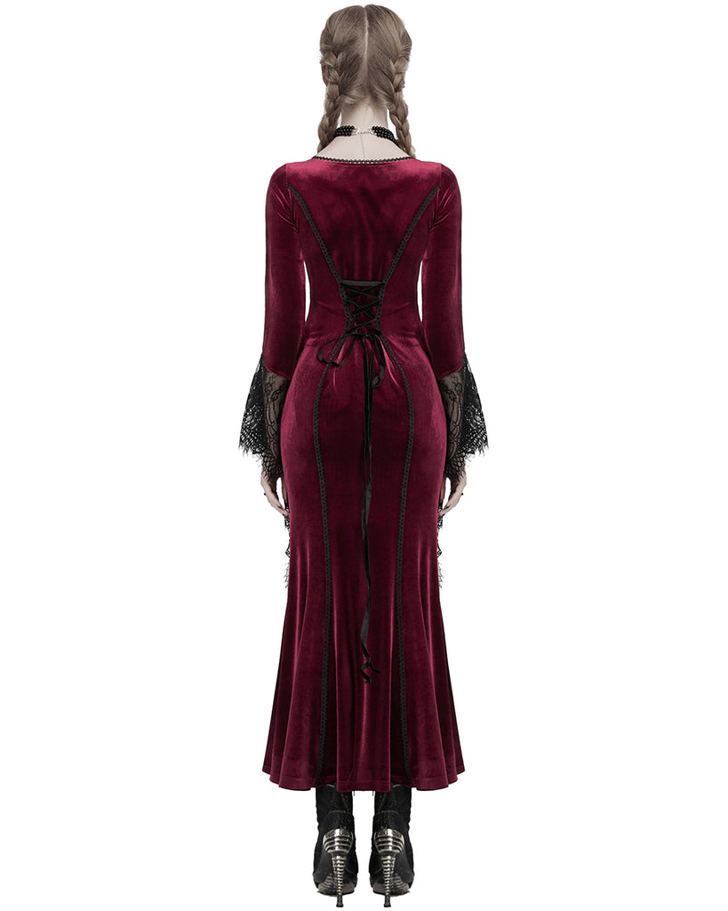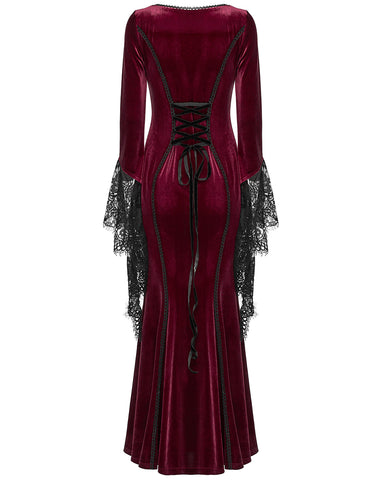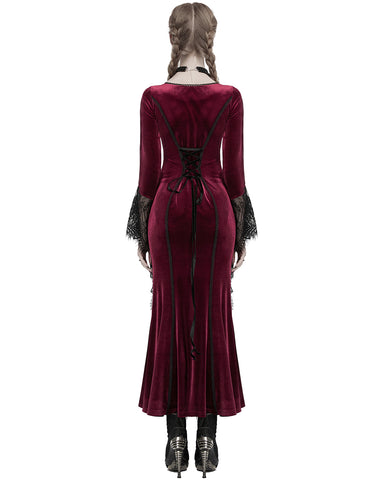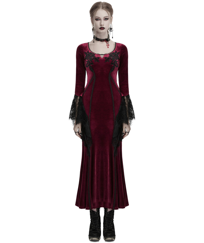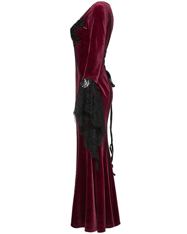 Punk Rave Daily Life Womens Long Gothic Velvet Applique Maxi Dress - Red