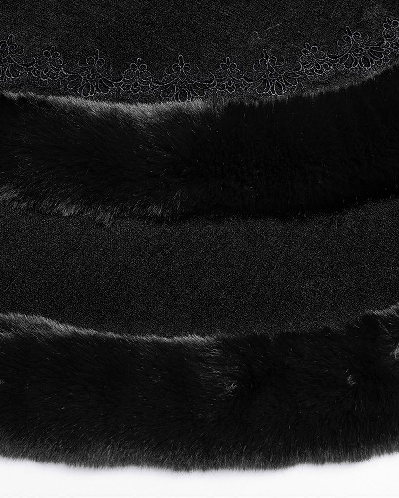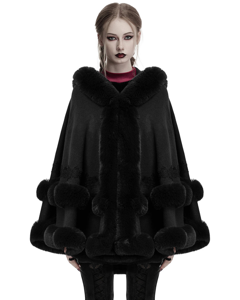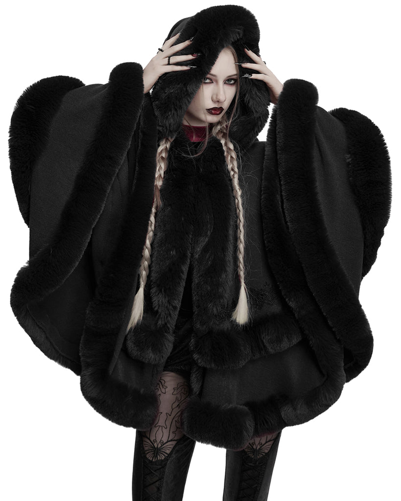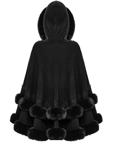 Punk Rave Daily Life Womens Plush & Faux Fur Hooded Winter Cloak - Black