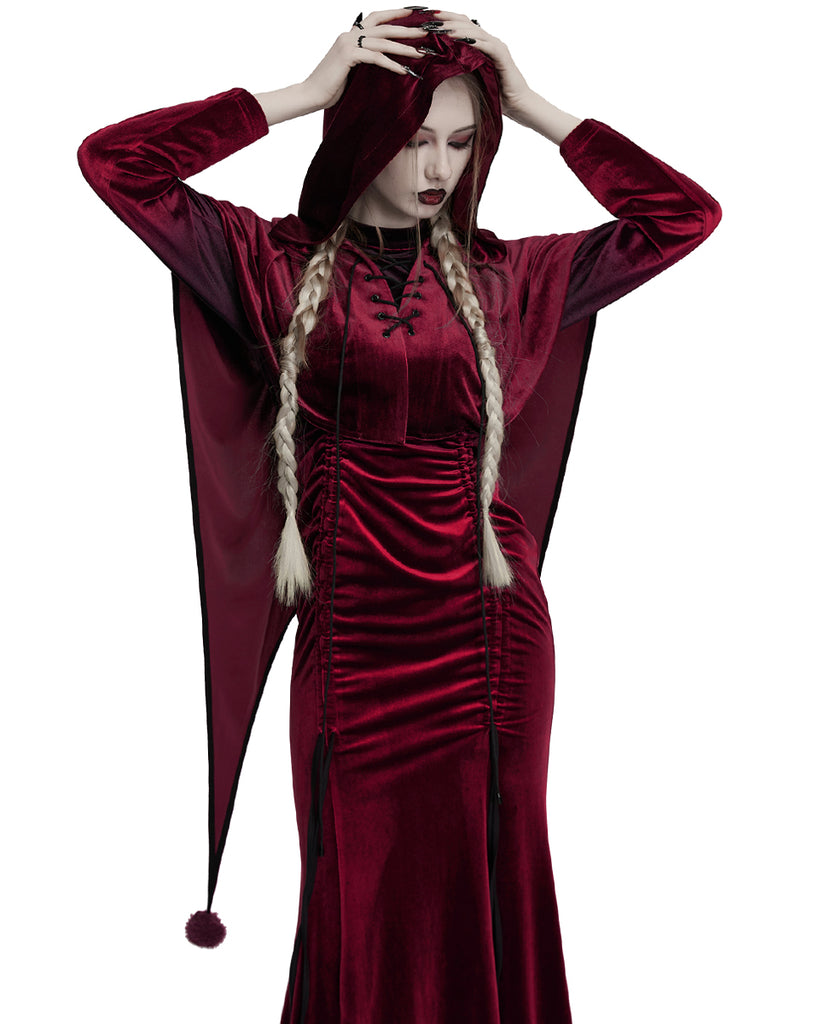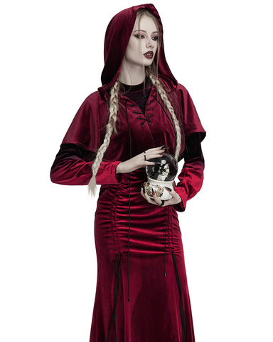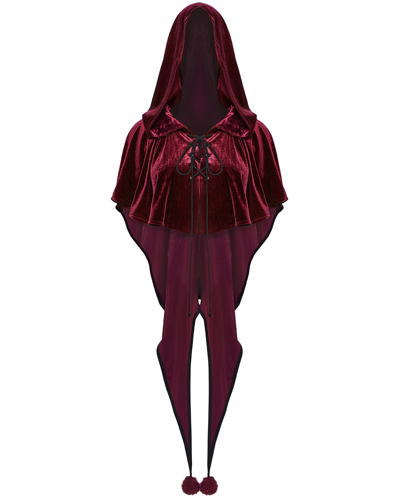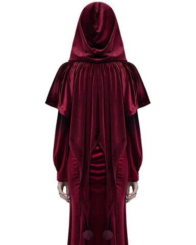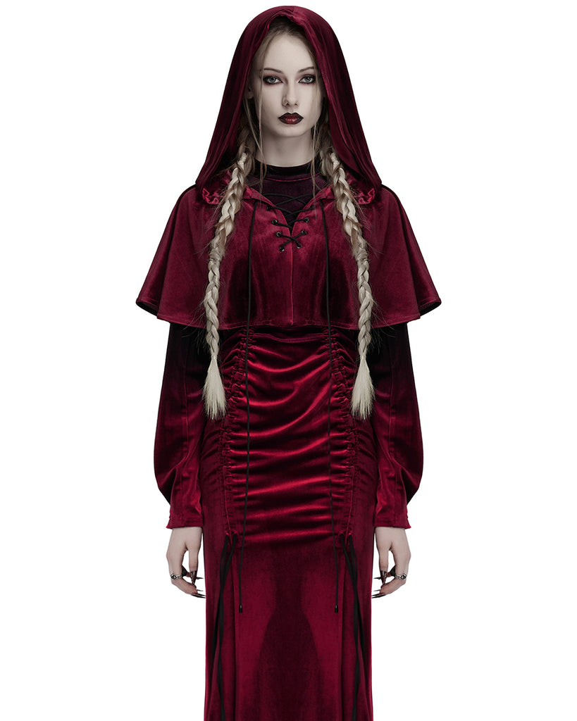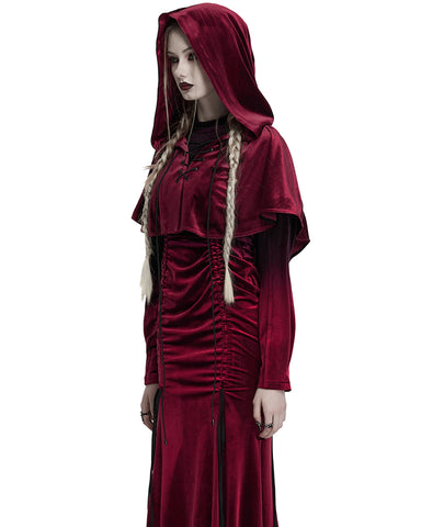 Punk Rave Daily Life Womens Velvet Gothic Lolita Hooded Split Tails Bolero Cape - Red