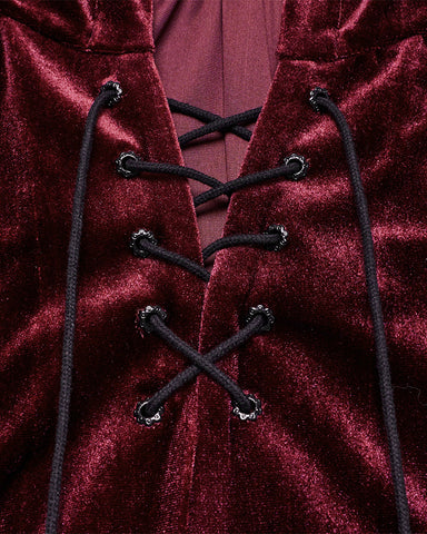 Eva Lady Womens Elegant Victorian Gothic Ruched Velvet & Lace Blouse Top
