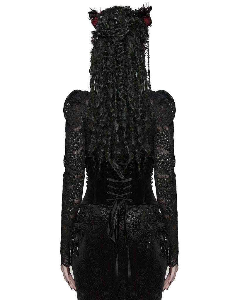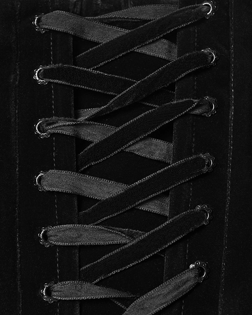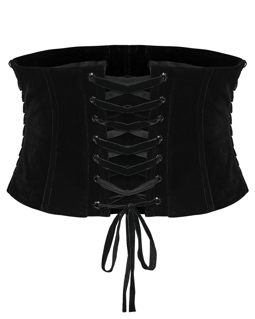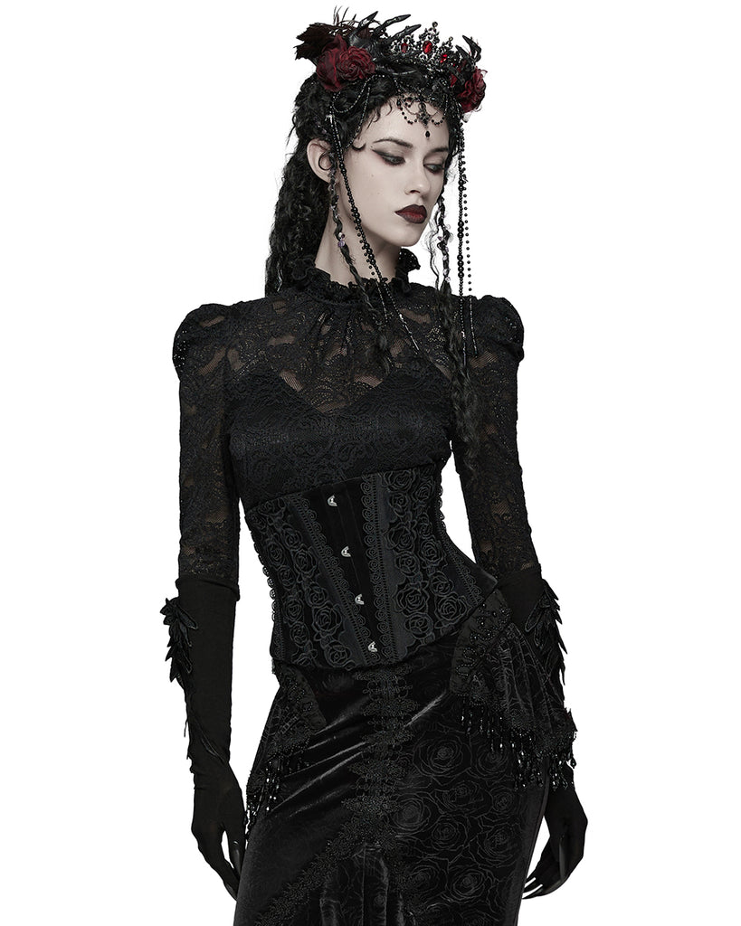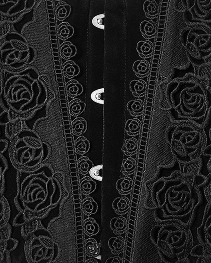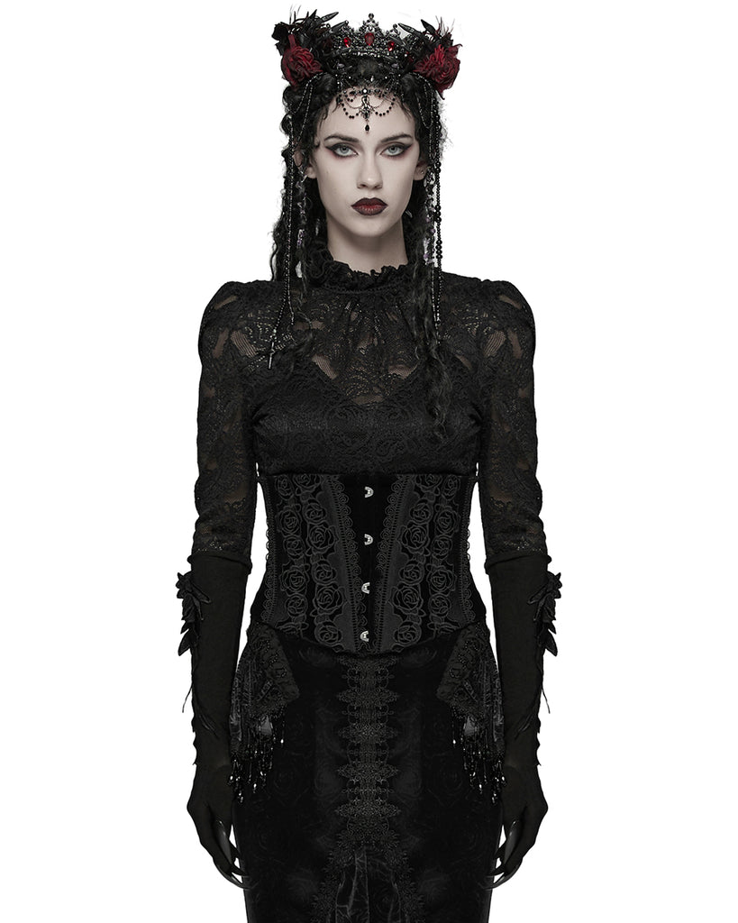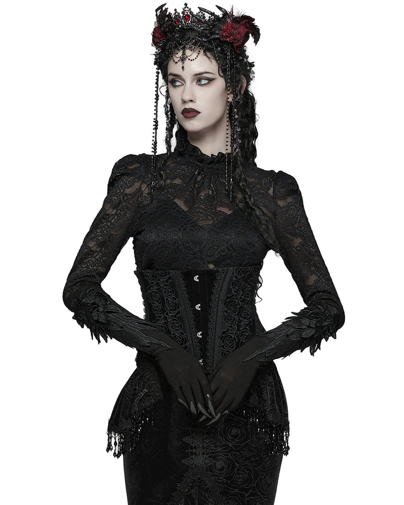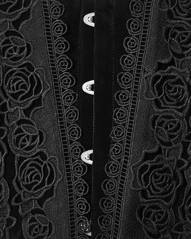 Punk Rave Womens Baroque Gothic Rose Embroidered Velvet Cincher Corset - Black