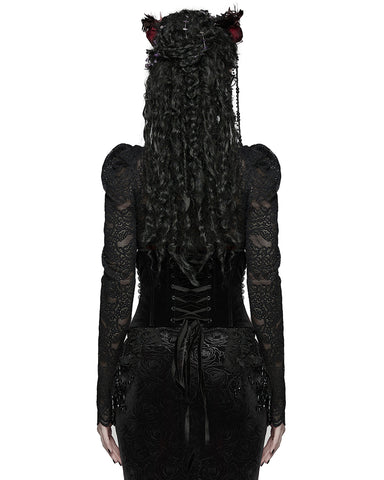 Punk Rave Morgana Womens Gothic Velvet Blouse Top - Red