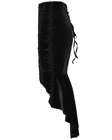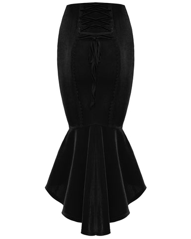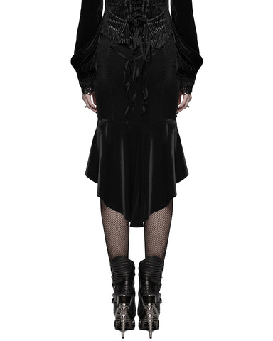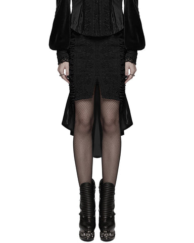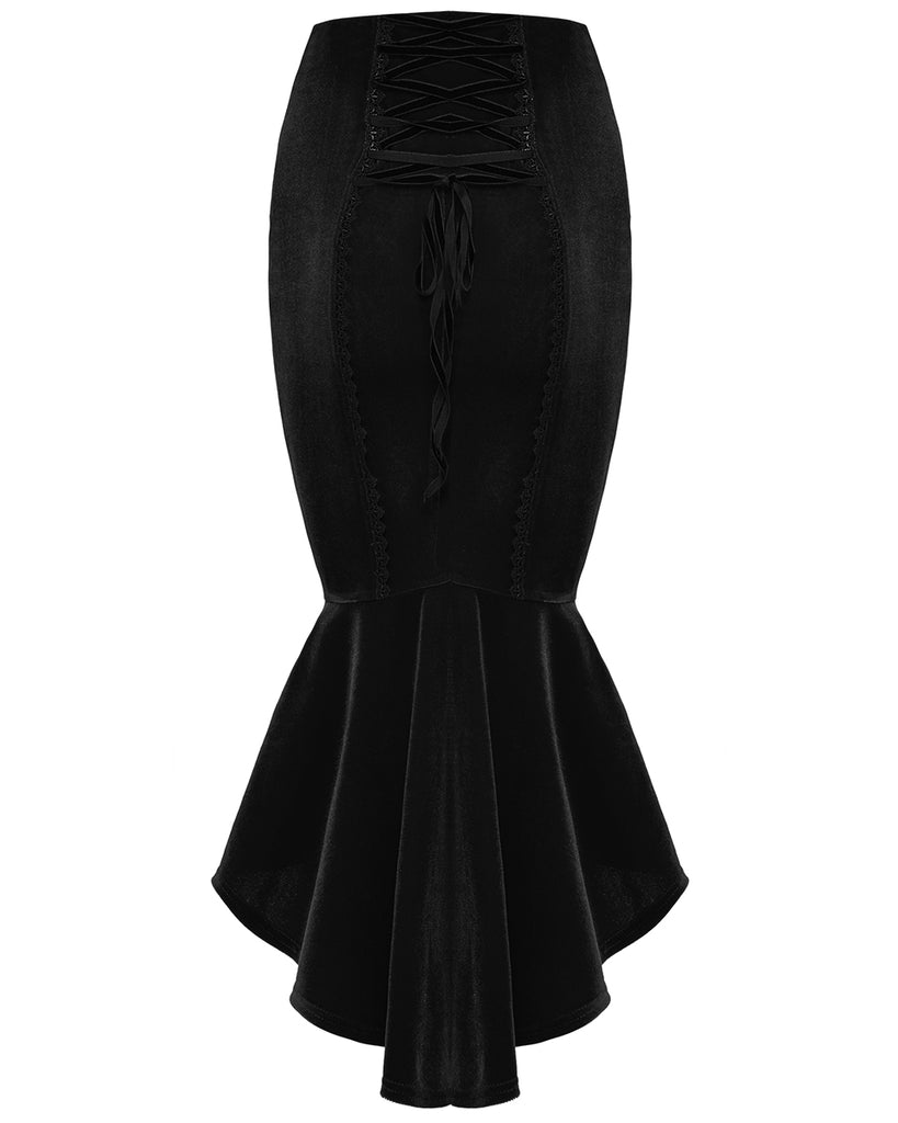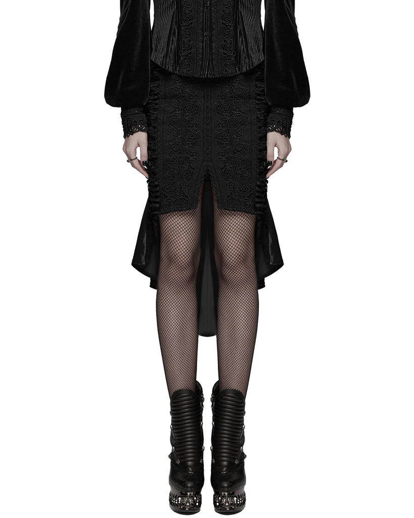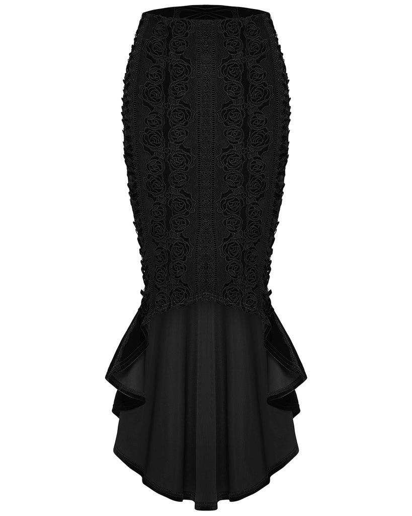 Punk Rave Womens Baroque Gothic Rose Embroidered Velvet Fishtail Skirt - Black