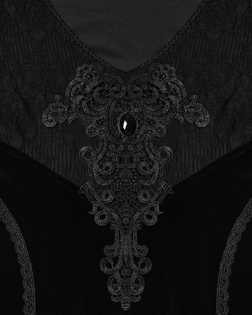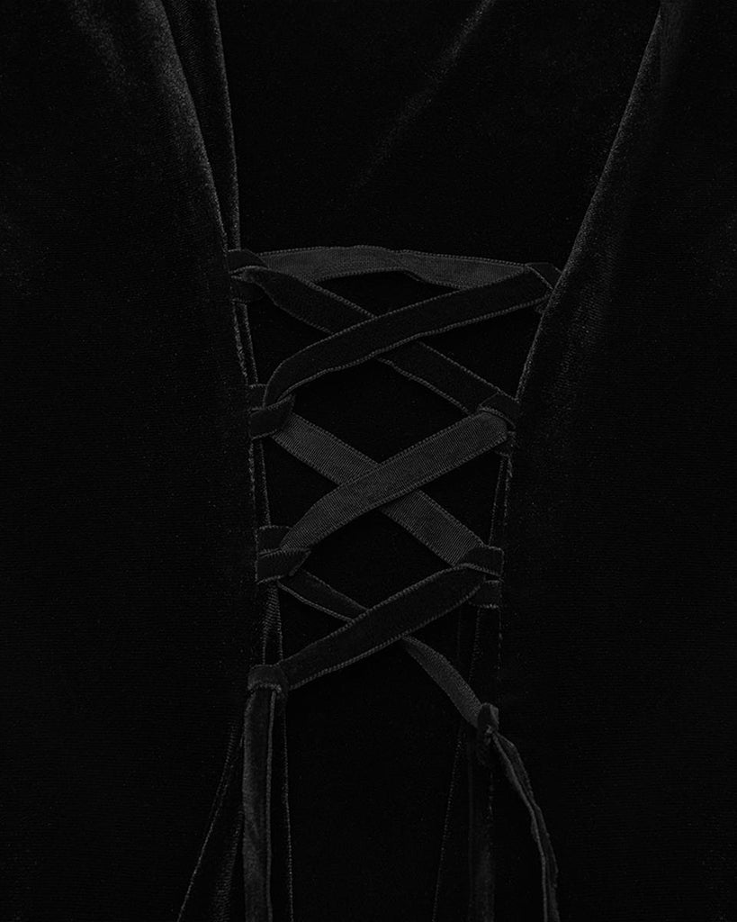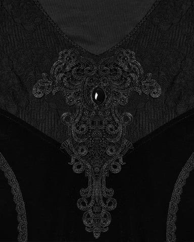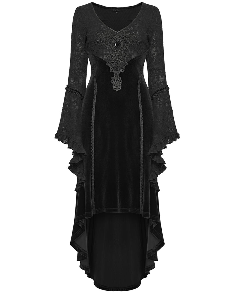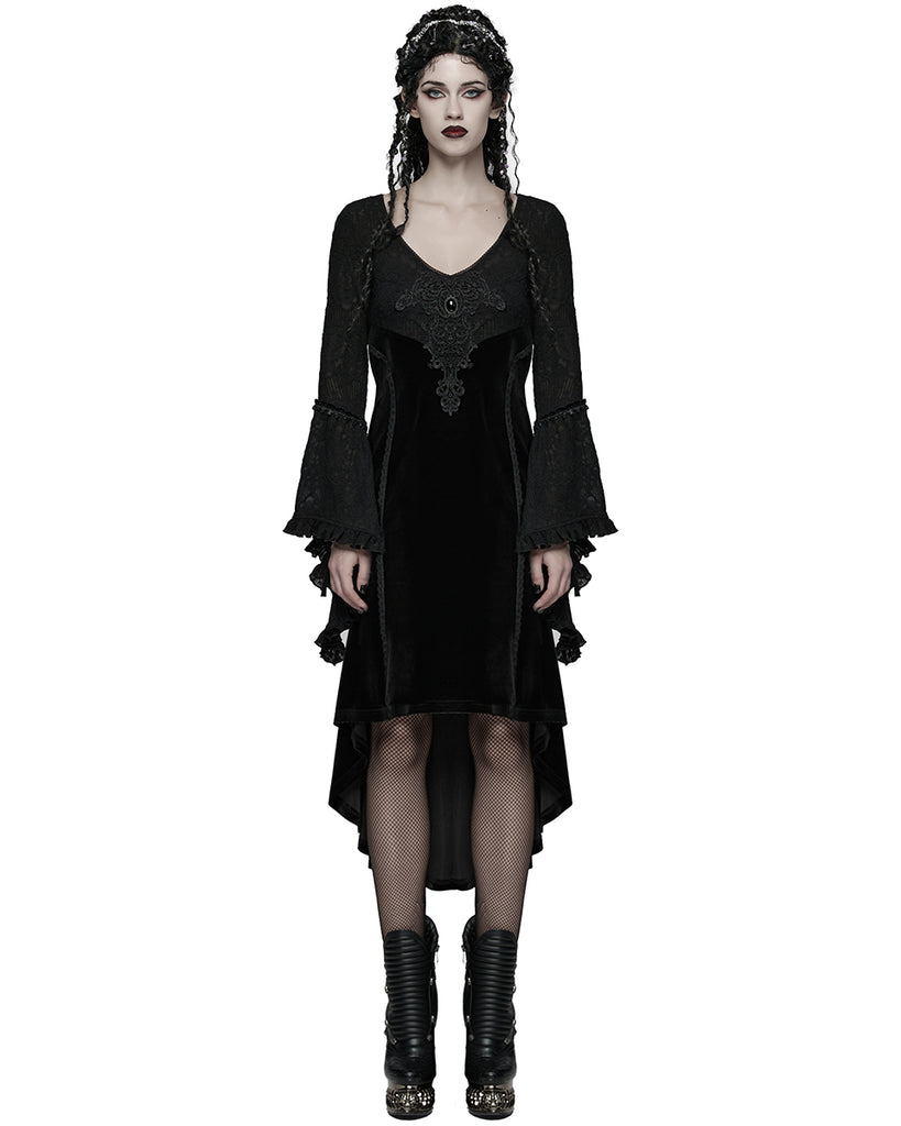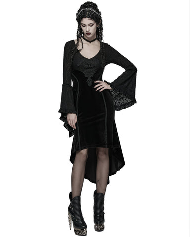 Punk Rave Womens Dark Gothic Velvet Applique Fishtail Dress