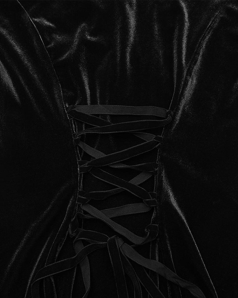 Eva Lady Womens Elegant Victorian Gothic Ruched Velvet & Lace Blouse Top